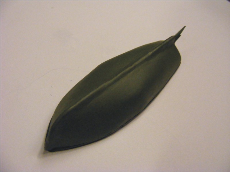 Wybrałem wariant oszczędnościowy (z punktu widzenia finansowego). Najpierw wykonałem gipsowe kopyto, na które położyłem przezroczystą okładkę do dokumentacji projektowej. Kopyto z folią wrzuciłem do piekarnika co chwila kontrolując stopień roztopienia folii. Folia topiła się dość szybko i przypominała topiący się żółty ser na grzance. Po paru minutach wyciągałem szalupę z piekarnika, wycinałem nadmiar folii. Niestety z uwagi iż folia była w jednym kawałku, w miejscu kątów ostrych (dziób) i prostych (rufa) folia stopiła się nierównomiernie tworząc zgrubienia i załamania. Poczyniłem kolejną próbę z nacięciami folii w części dziobowej i rufowej. Stopiłem folię i w tym przypadku również pojawiły się zgrubienia ale bardziej akceptowalne i postanowiłem poddać szalupę dalszej obróbce. Niestety podczas wytapiania w piekarniku folia nie do końca przylegała do kopyta i moja szalupa miała lekko pofalowaną powierzchnię. Zagłębienia uzupełniłem szpachlą i zaczynam szlifowanie...