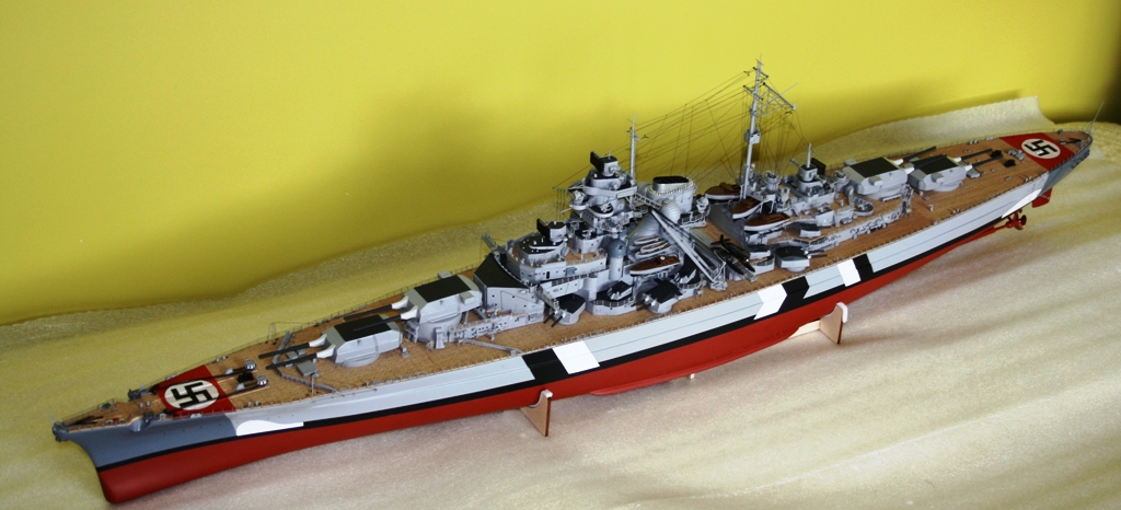 Kazek,zbudowałeś Bismarcka w iście expresowym tempie.Biorąc pod uwagę skalę to Niemcy budowali go jeszcze szybciej,niecałe 31 miesięcy.Niemniej kanclerz Otto von Bismack były zadowolony z uhonorowania w takiej postaci i to od nacji którą chciał wytępić.To tak na marginesie.Gratulacje z ukończenia modelu.Pozdrawiam.Kazimierz.