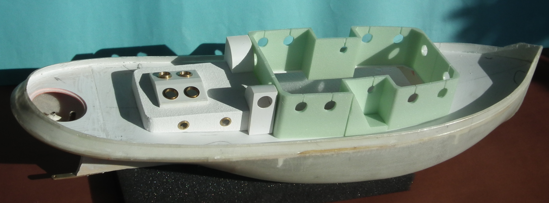 Na zdjęciu nadbudówka maszynowni oklejona już płótnem ale nie szpachlowana ani malowana .