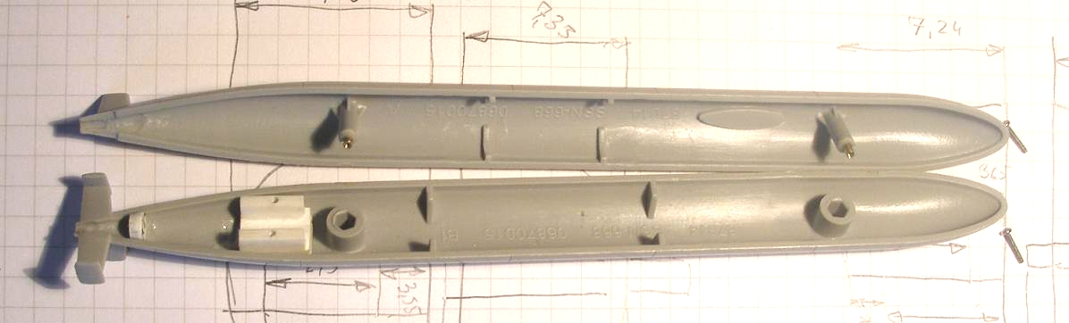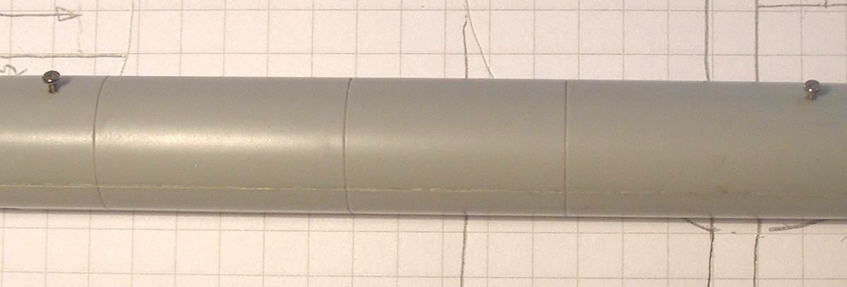 Takie tulejki, po paru próbach wykonałem. Włożyłem je do kadłuba i przewierciłem