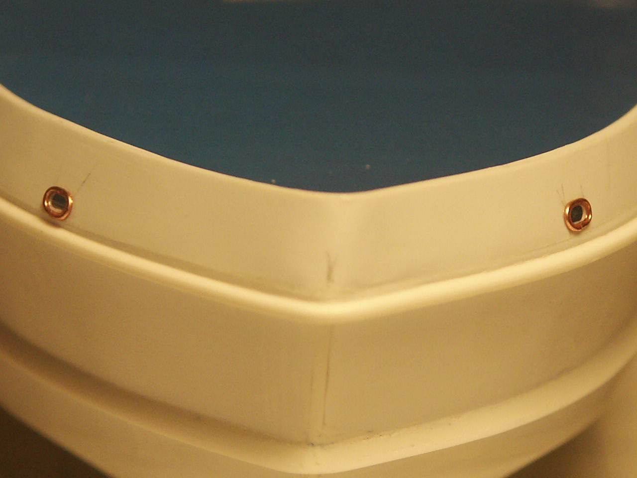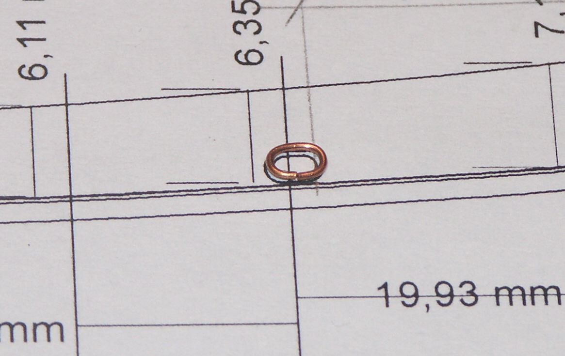 Małymi kroczkami do przodu. Wypiłowałem otwory na kluzy, szt. 4. Ze spienionego PCV przygotowałem szablon, który owinąłem drutem o.5 mm, przeciąłem, zeszlifowałem do połowy i nakleiłem we właściwym miejscu.