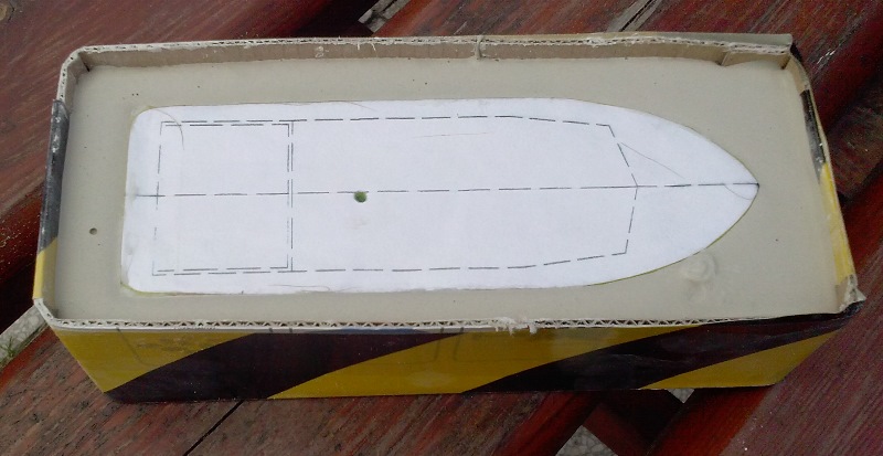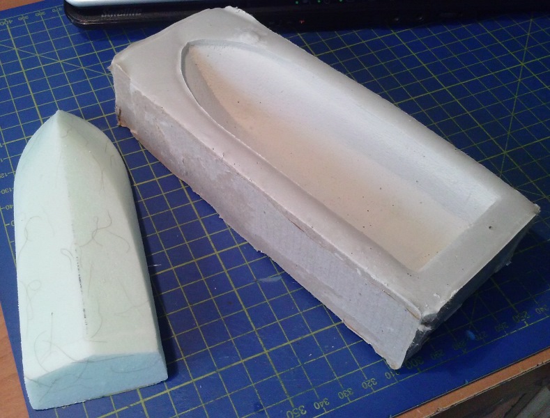 dzisiaj z pianki od rychenka wyszlifowałem coś na kształt jednej z 2 łodzi ratunkowych. Następnie odlalem formę z gipsu budowlanego (bo szybko schnie - ja zostawiłem na 1-2h i gotowe). Teraz muszę lekko poprawić wewnątrz formy, a następnie zrobię szalupki z laminatu.