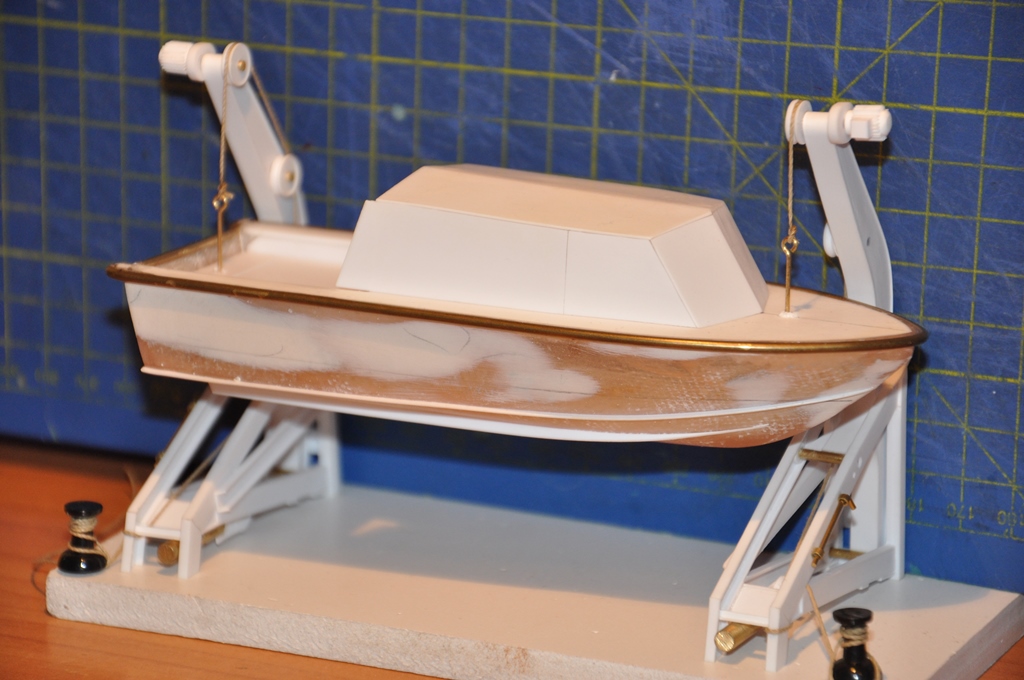 No i w końcu koniec prac przy dzwigach szalup..dokończyłem górną część dźwigu, teraz małe mizianie papierkiem aby zlikwidować zacieki kleju, potem podkład i narazie do pudełka (latem będzie malowane). Oto kilka fotek: