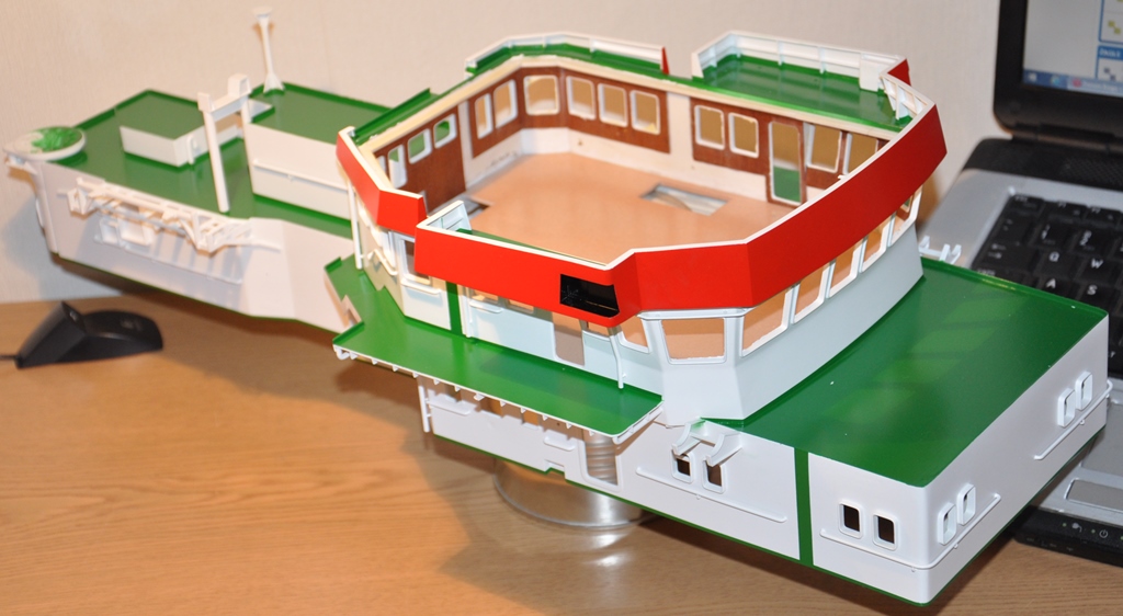 Niedawno udało mi się ostatecznie pomalować nadbudówkę. Teraz czeka mnie tylko kosmetyka drobnym papierkiem ściernym (wygładzenie na styku kolorów), ale to zostawiam na deszczowe dni
