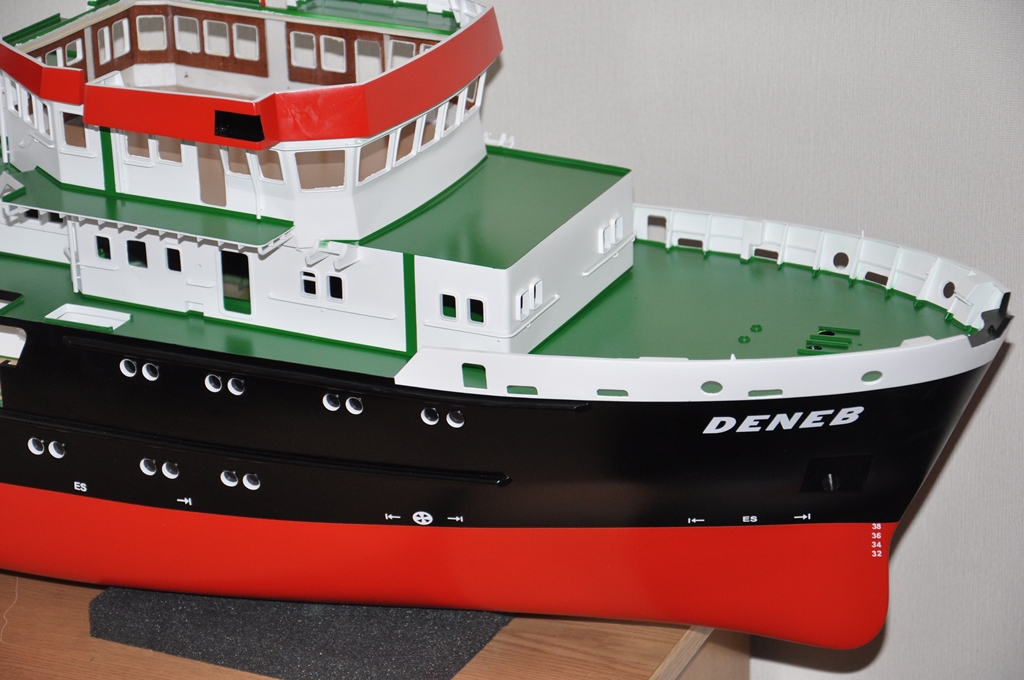 Deneb posiada dwa stery strumieniowe. Tylny standardowy, a przedni pod spodem jako pompa pomocnicza. Jest skontrowania w taki sposób aby działała jak ster strumieniowy. Obraca się wokół własnej osi a dysze kierują wodę w odpowiednim kierunku. Co do numerów poniżej lini wodnej to poprostu takie miałem na zdjęciach, a niestety nie posiadam na ich temat żadnych szczegółów.