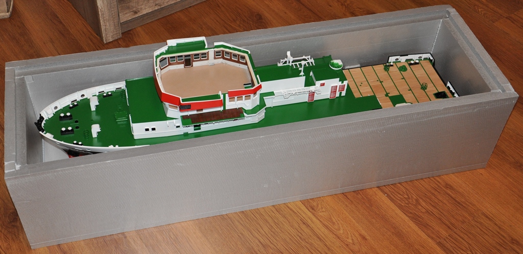 Dzieci biegają po pokoju to i się robi niebezpiecznie dla modelu. Postanowiłem zrobić tanim kosztem pojemnik lekki i jak się okazuje odpowiednio wytrzymały do transportu modelu. Użyłem do tego 1m2 styroduru 40mm gr. (koszt ok 20zł + klej)