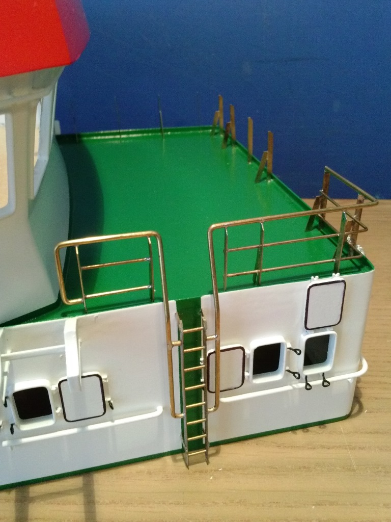 , no ale znalazłem nieco czasu na dłubanie. Zrobiłem już okiennice i teraz zabieram się za relingi nadbudówki. Wszedłem na wyższy poziom lutowania i robię to bezpośrednio na gotowym modelu. Wszelkie niedoskonałości miejsc lutowanych wyeliminuje przez piaskowanie zanim zacznę malować. Relingi są tak robione abym mógł je sobie spokojnie wyjąć na czas malowania.