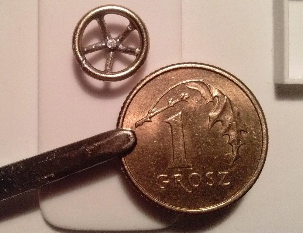 Kolejno na zdjęciach część nadbudówki ze sterówką. poprawiłem tyły, tzn. wytoczyłem sobie wieżyczkę z posklejanych kawałków polistyrenu o gr. 4mm. i dodałem jakieś włazy, i ramki pod wentylację.