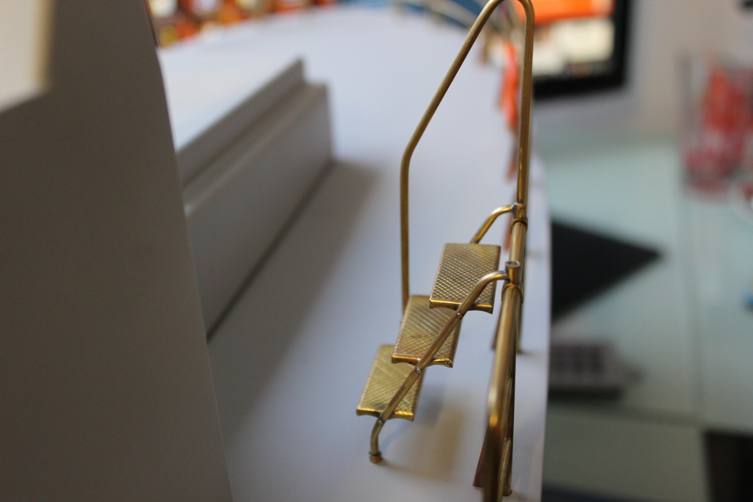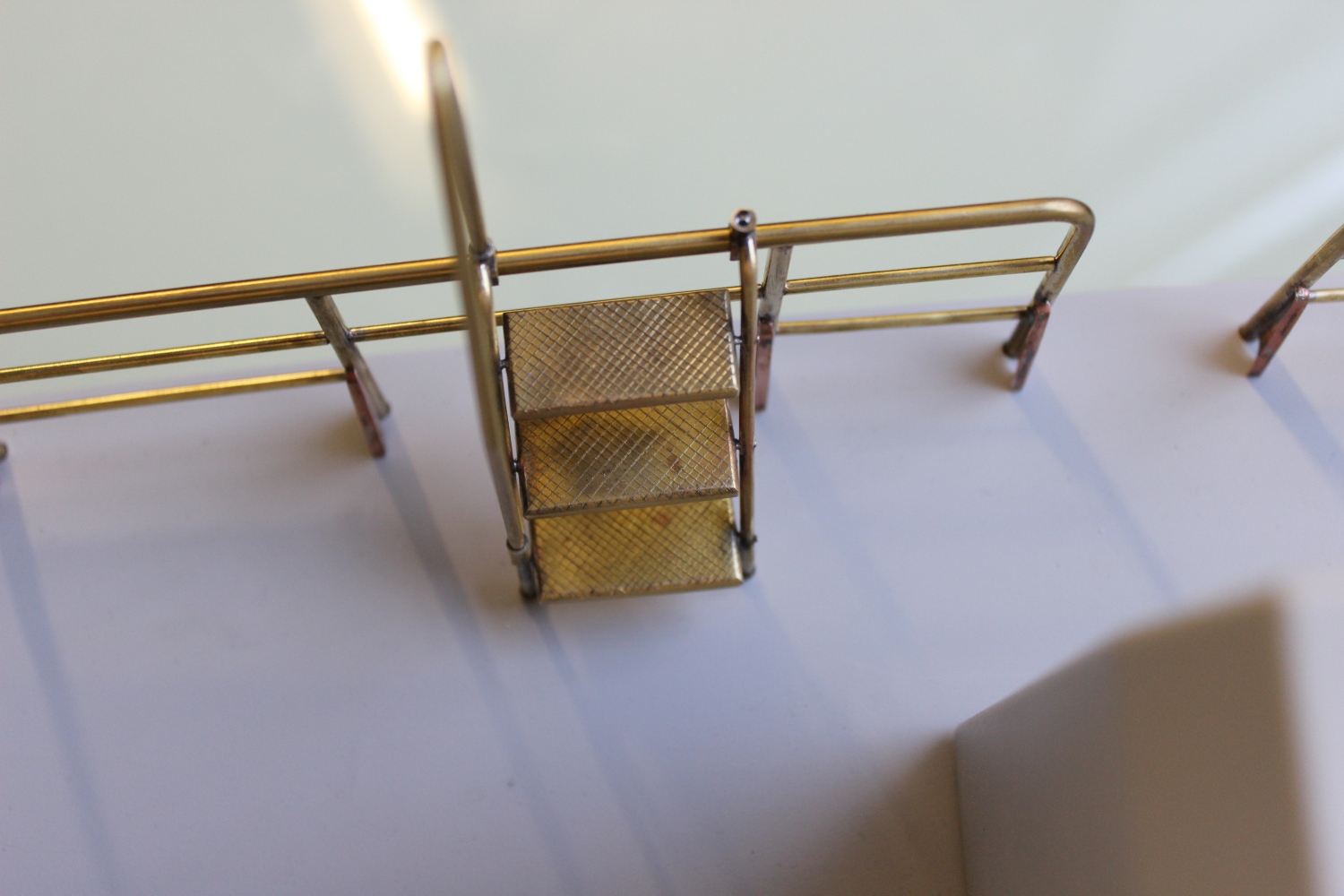 W dzisiejszym poście chciałbym pokazać kolejny element "barierkę głównego pokładu "materiały to pręty rurki i blacha wszystko w miarę możliwości pocięte i polutowane palnikiem proxxon .Nie było łatwo a sam element wymaga jeszcze dopieszczenia a to dopiero przed właściwym montażem