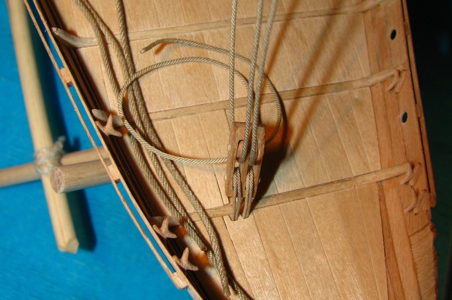 A tak wygląda rufa z knagami i blokiem.