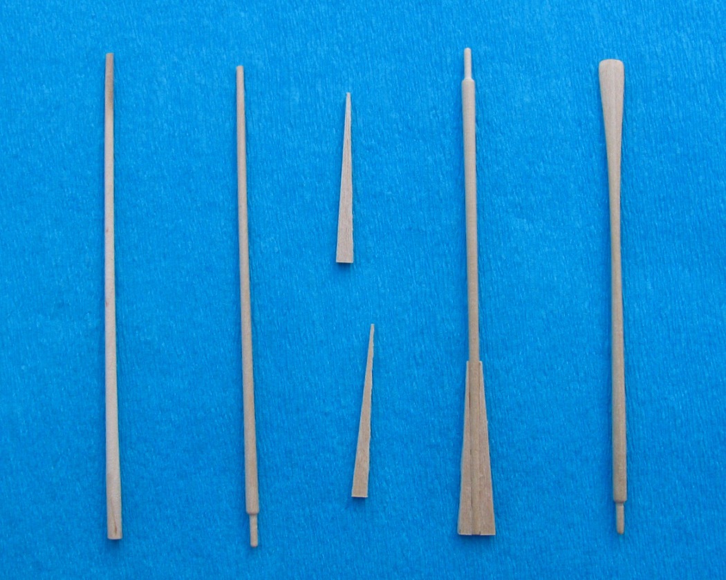 Skończyłem wiosła. Te stojaki będą przymocowane do burt, trochę przed masztem tak aby ułożone w nich wiosła nie zaczepiały o wanty.