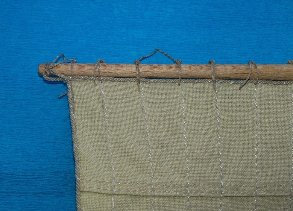 Wykonywany dokładnie tak jak pokazał Daro_Buko w relacji z budowy Predistinacji. Jedynie usztywnienie-wygięcie żagla zrobiłem za pomocą rozwodnionego kleju BCG, ponieważ po sprawdzeniu na osobnym kawałku materiału okazało się, że nie zostawia on żadnych śladów ani przebarwień.