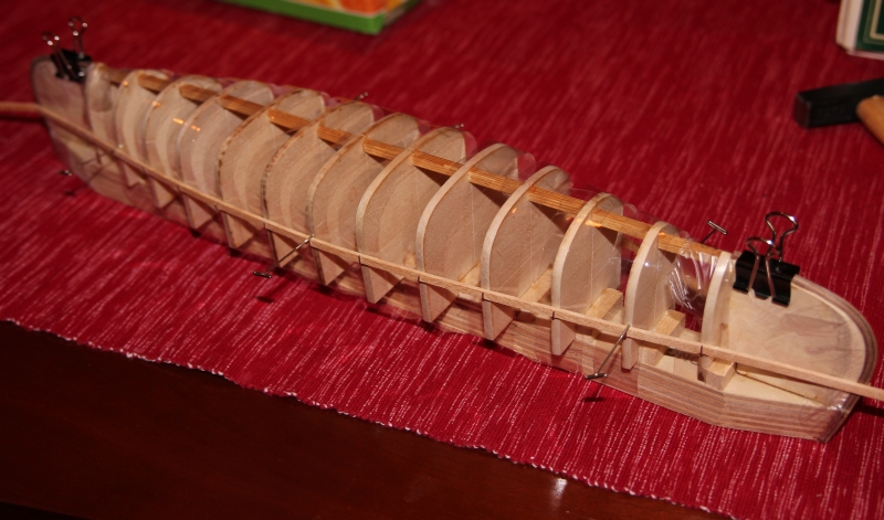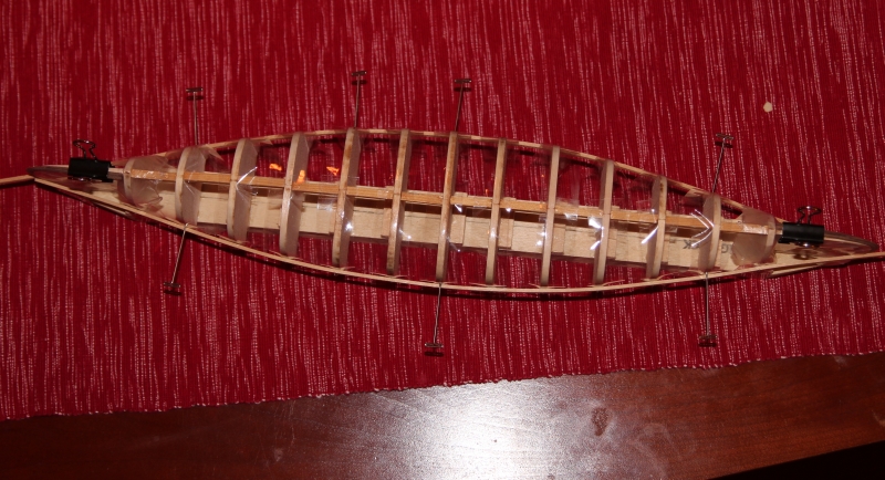 Pierwsza para planek namoczona i ukształtowana na kopytku suszy się. Jak wyschnie i wszystkie naprężenia ustąpią przystąpię do klejenia. Niestety nie wiem z jakiego drewna są planki, ale po namoczeniu są bardzo elastyczne i można je kształtować w dowolnym kierunku bez ryzyka złamania.