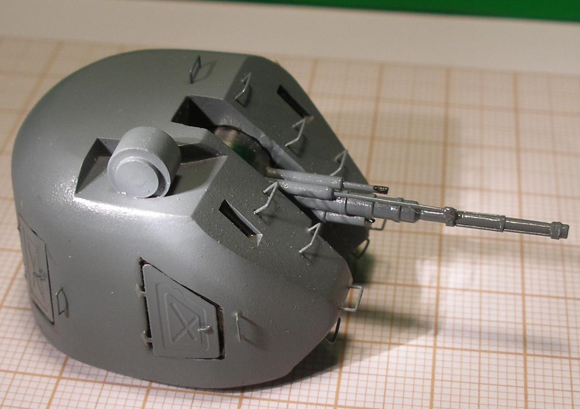 Pięknie. Ale _! Na prawej stronie u góry na armacie to nie reflektor a osłona wizjera peryskopu. Proszę popatrzeć na plany w Modelarstwie Okrętowym :) Wygląda to nieco inaczej! Pozdrawiam!