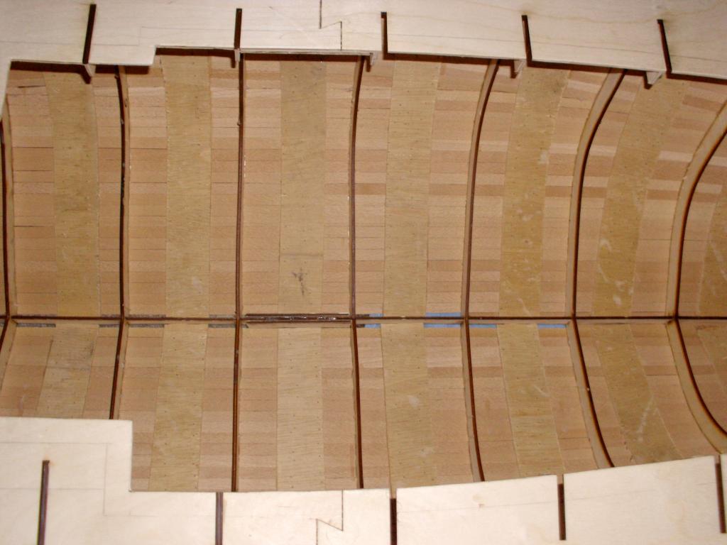 Szału nie ma ale zrobiłem (wkleiłem) paski sklejki szkutniczej jako wzmocnienia poszycia od środka.