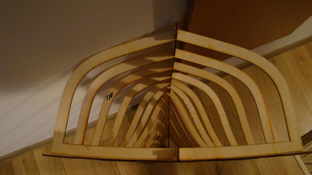 Szkeilet ze sklejki wodoodpornej 3mm oklejony listewkami. Reszta to polistyren.