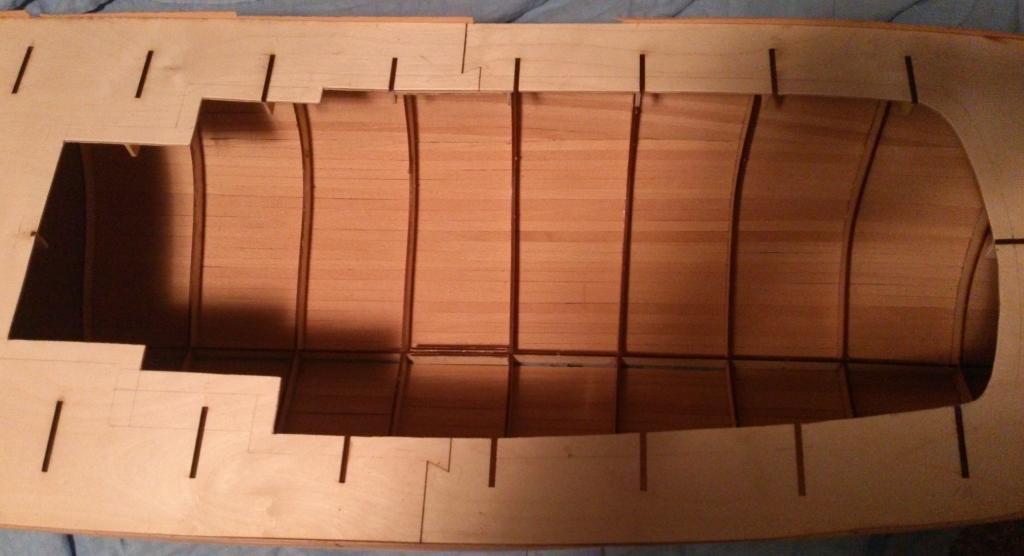 Szału nie ma ale zrobiłem (wkleiłem) paski sklejki szkutniczej jako wzmocnienia poszycia od środka.