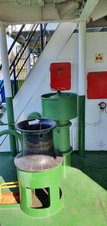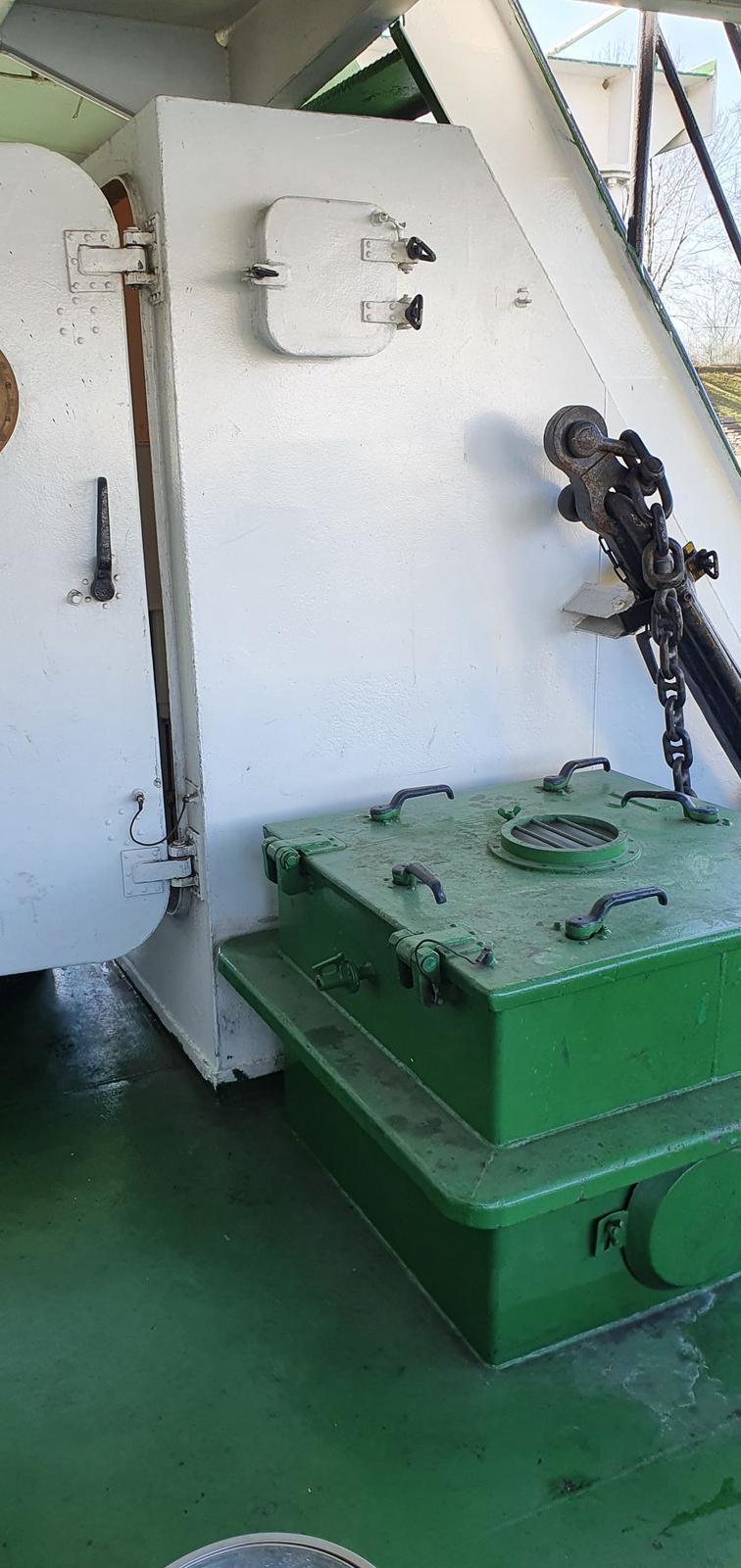 To co zaznaczyłeś to jest zejściówka. Statku nie znam ale jest to przyspawane obramowanie (policzki) schodów (trapu) zejściowych na pokład główny. Wszystko jest mocno pospawane
