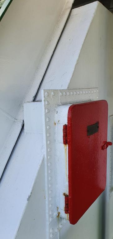 Trap może być elementem integralnym i osadzony na zejściówce. Żadna blacha na statku czy okręcie nie może być luźna. To co masz na zdjęciu jest to osłona przyspawana do zejściówki a wolny koniec jest prawdopodobnie zakończony prawdopodobnie zagięciem dla usztywnienia krawędzi. Na zdjeciu wyraźnie widać spawanie /zaznaczyłem/.