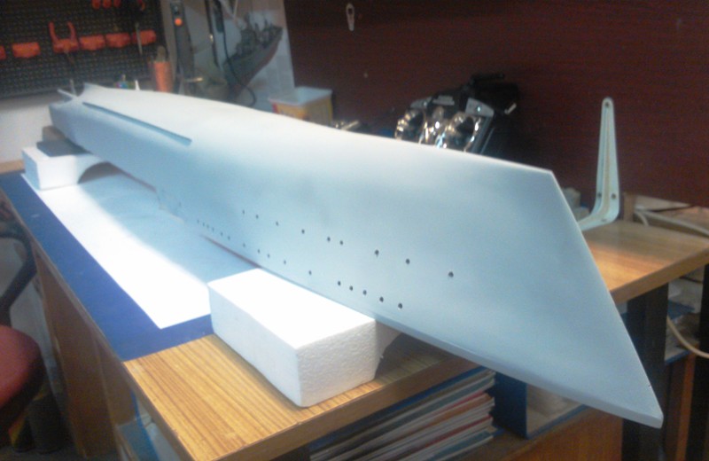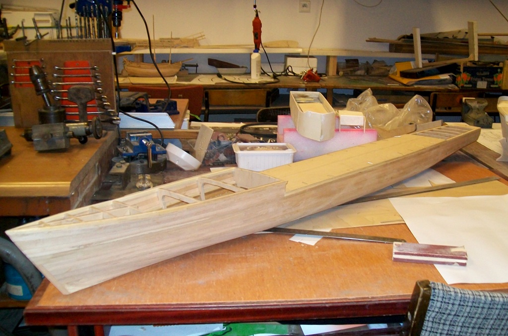 Budowa modelu "wichra" rozpoczęła się "kiedyś tam" i została zapoczątkowana przez mojego starszego kolegę, który po jakimś czasie wyprowadził się. Przez spory czas "surowy" kadłub oklejony listewkami nabierał mocy urzędowej. Około półtorej roku temu postanowiłem "dobrać się" do tego okrętu i tak budowa trwa do dziś i pewnie będzie trwała jeszcze...hmm... rok , dwa lata - nie mam pojęcia. Niestety nie mam wielu zdjęć z początkowej budowy okrętu, jednak późniejsze zdjęcia będą wrzucane na bieżąco. Co do wymiarów to Wicher będzie miał długość 1,6 m a szerokość 16 cm.