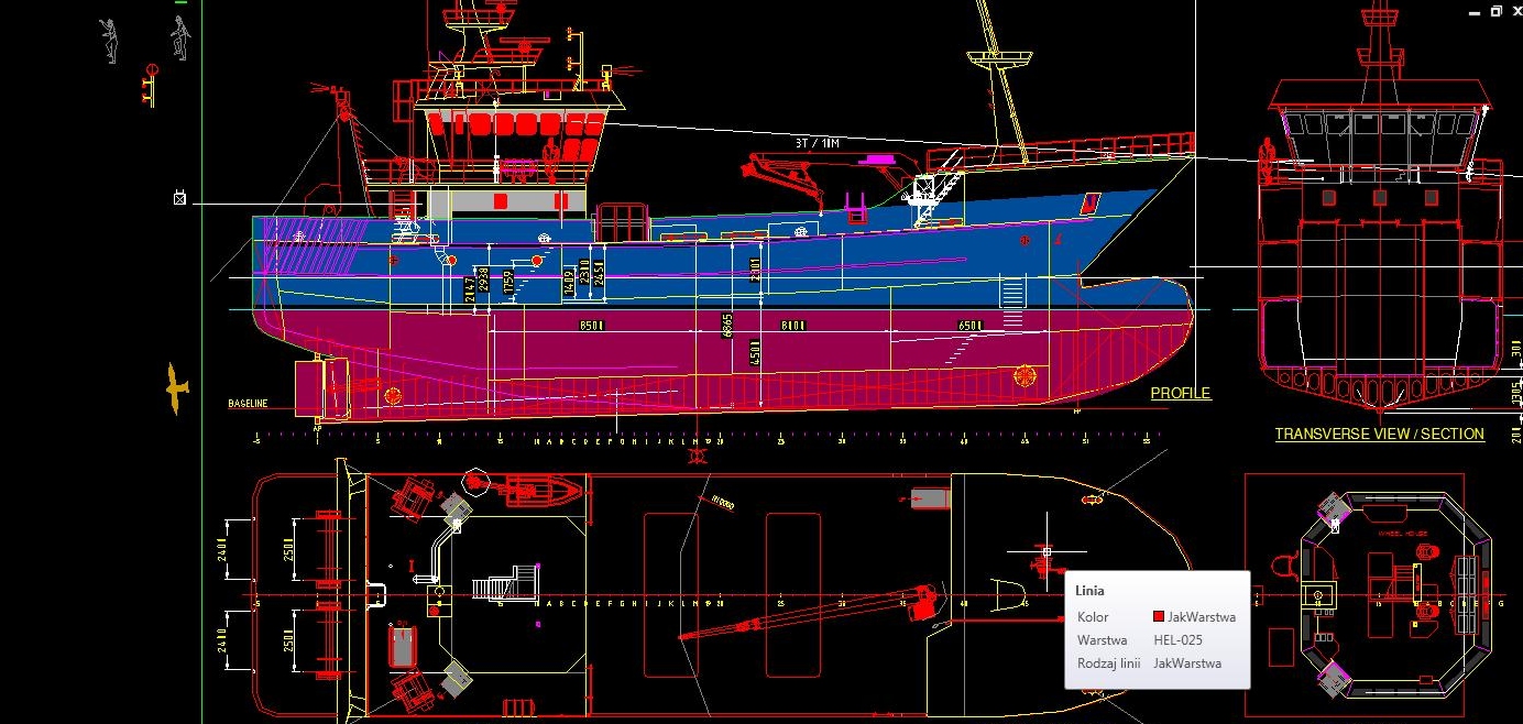 Wszystko jest rysowane w warstwach, które można wygaszać, w zależności od potrzeb.