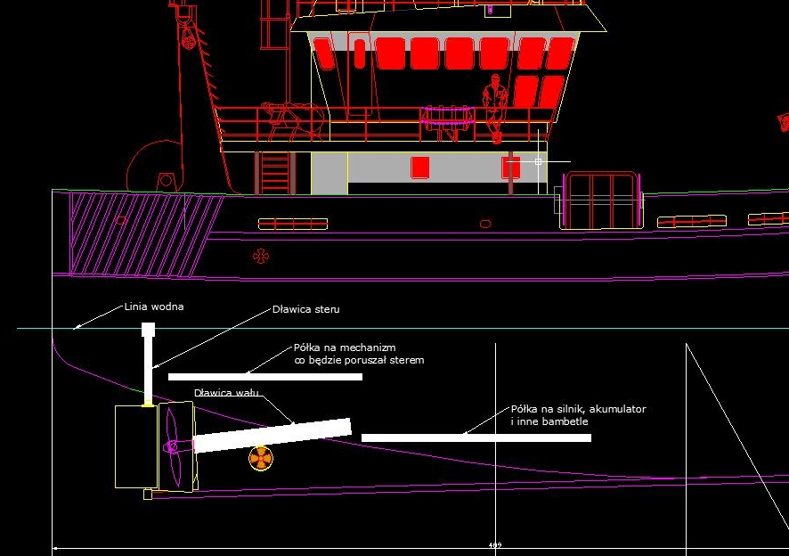 a) układ napędowy (śruba, wał, dławica, łoże pod ewentualny silnik)
