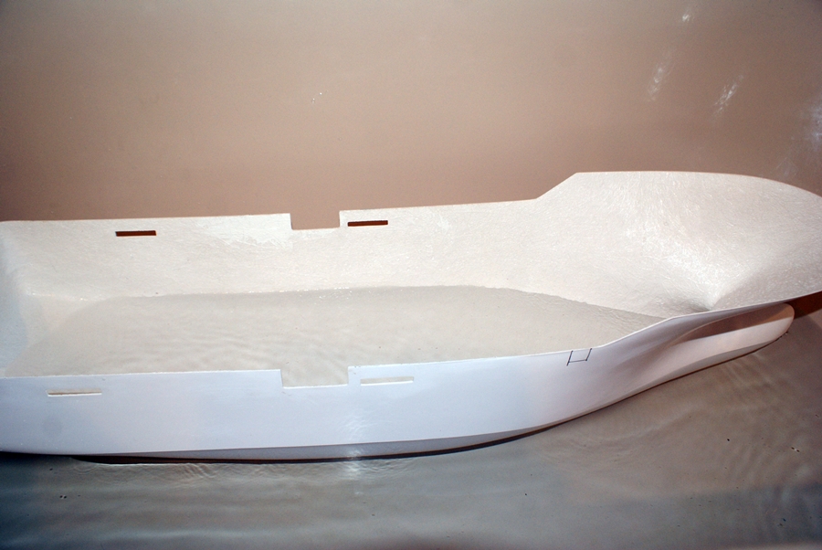 Zrobię to jeszcze raz, ale wcześniej będę musiał nanieść linię wodną i dokładnie określić ile balastu trzeba, aby zanurzyć kadłub do linii wodnej. Wtedy dokładnie będę wiedział ile może ważyć to wszystko, co będzie w kadłubie i na nim.