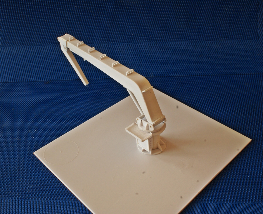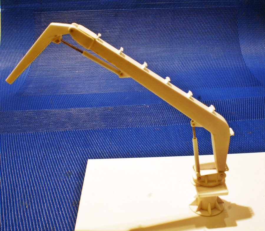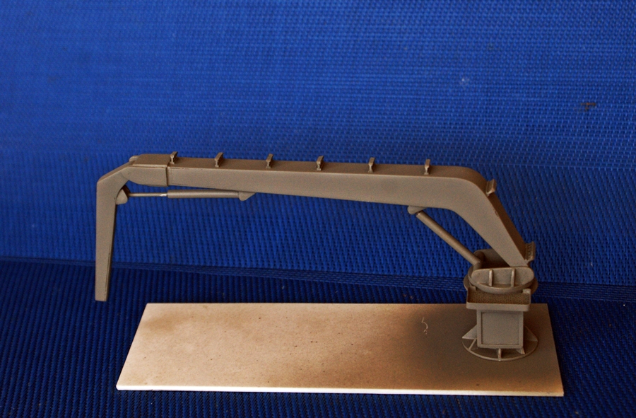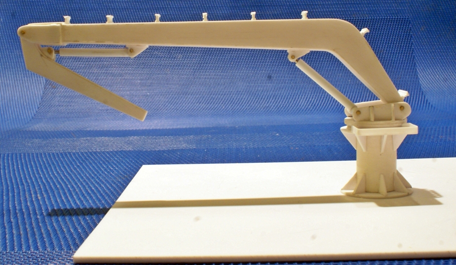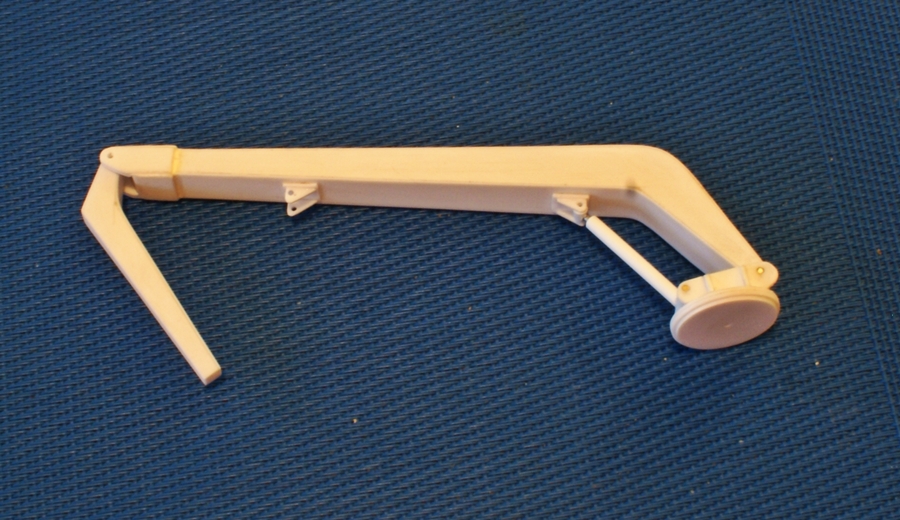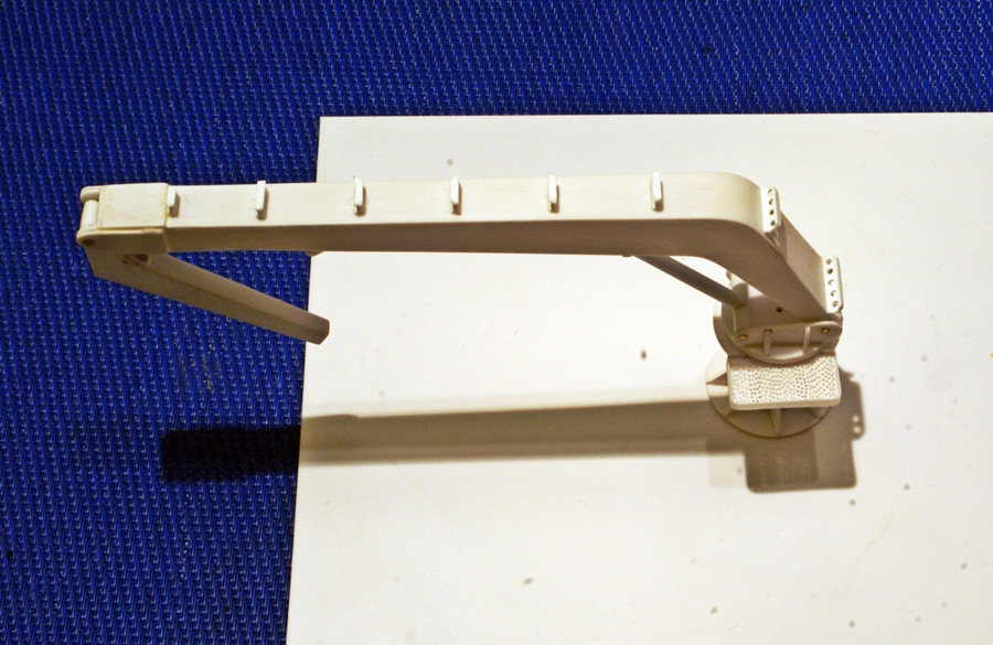 Pierwsze elementy dźwigu pokładowego. W planach pokazano tylko kształt i gabaryty. Takie elementy jak np. węże zasilające siłowniki hydrauliczne, trzeba będzie wykonać na podstawie zdjęć podobnych urządzeń.