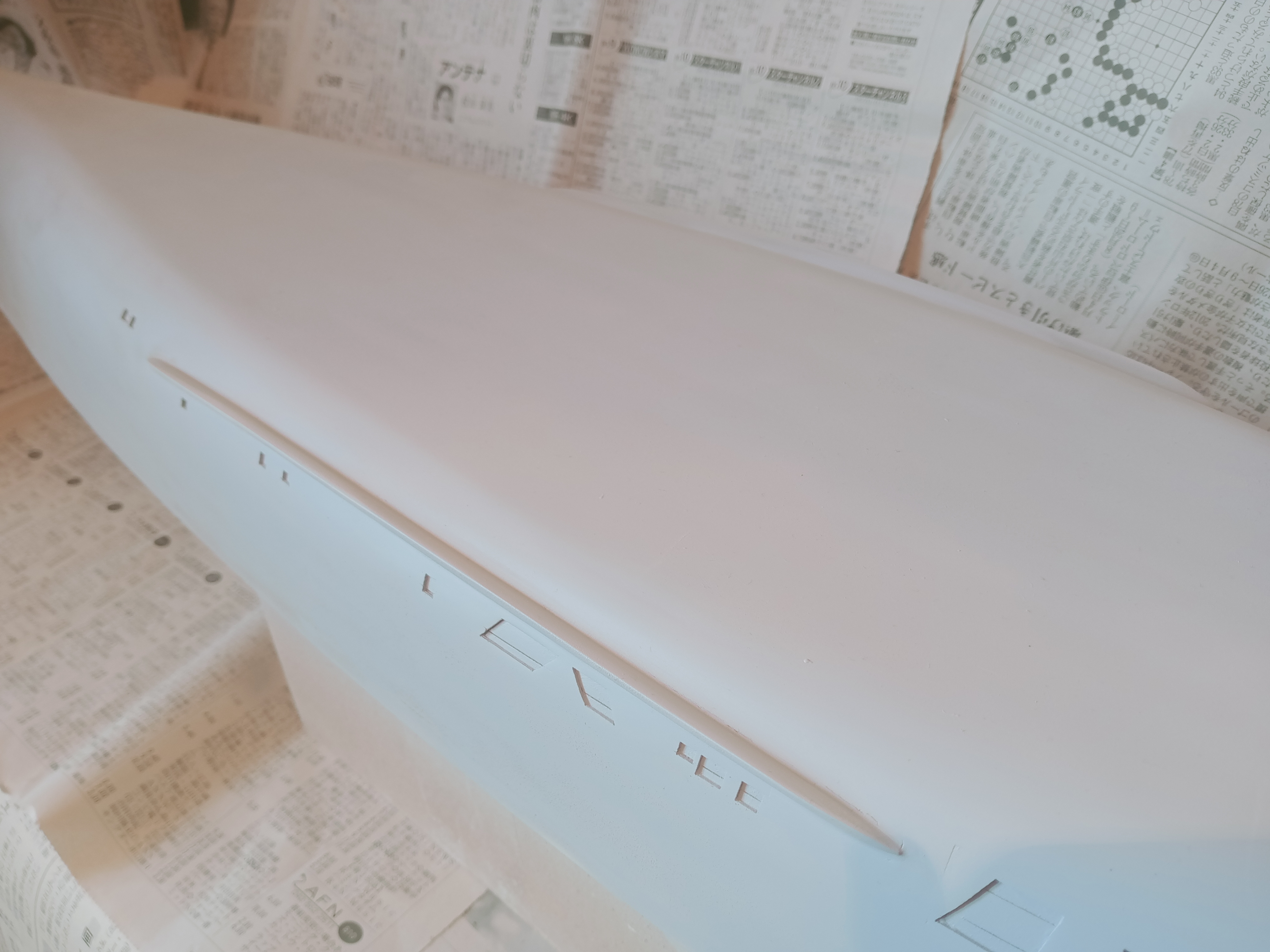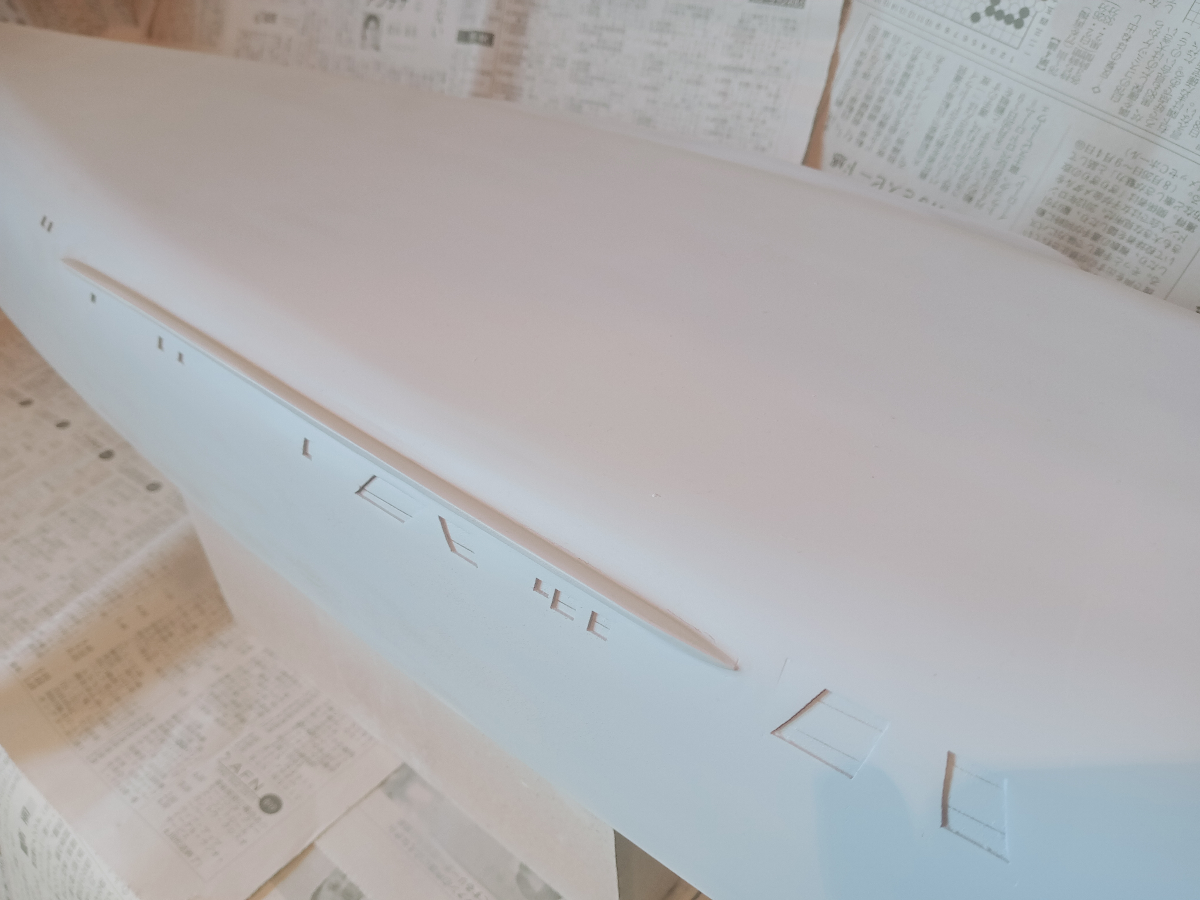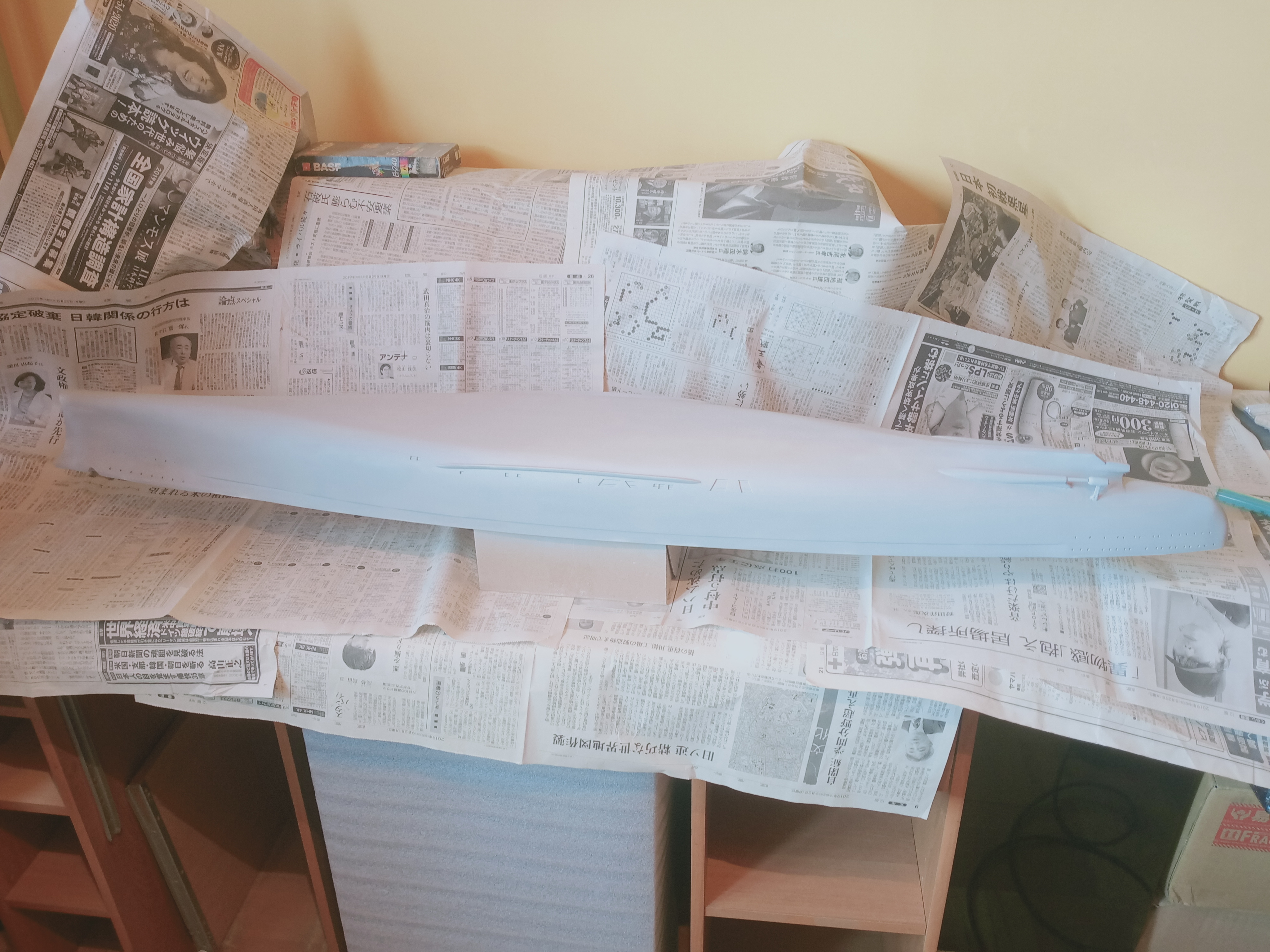 Ostatnie zdjęcie to stan na dzisiaj. Siedzę sobie i mam nadzieję, że dziś skończę obróbkę mechaniczną szpachli. Jak się uda i nie będzie późno to przelecę jeszcze farbą podkładową. Przynajmniej na rufie, żeby zobaczyć czy wszystko dobrze zrobiłem. Jak nie to będzie korekta. Pewnie finalnie naniosę kilka warstw podkładu, ponieważ podkład jednak mimo wszystko wypełnia niektóre mikro-niedociągnięcia. Mam nadzieję, że w tym tygodniu będzie większy postęp prac, więc wrzucę kolejne zdjęcia. Mam nadzieję, że Waszym okiem tragedii nie ma,