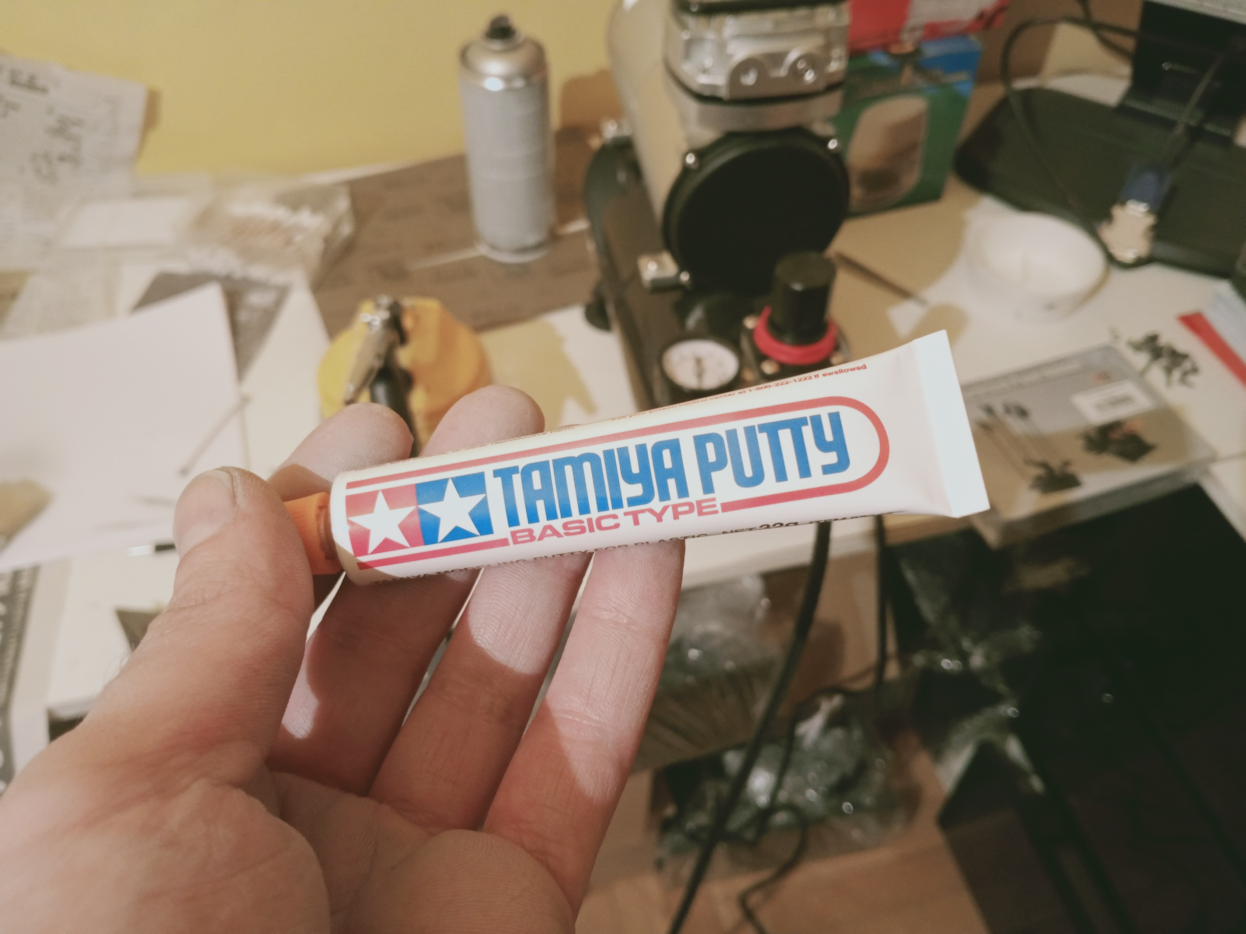 Dziś piątek i od popołudnia testuję areograf, kompresor i sobie wprowadzam korekty w kadłubie. Drobne niedociągnięcia szpachluję taką szpachlówką: