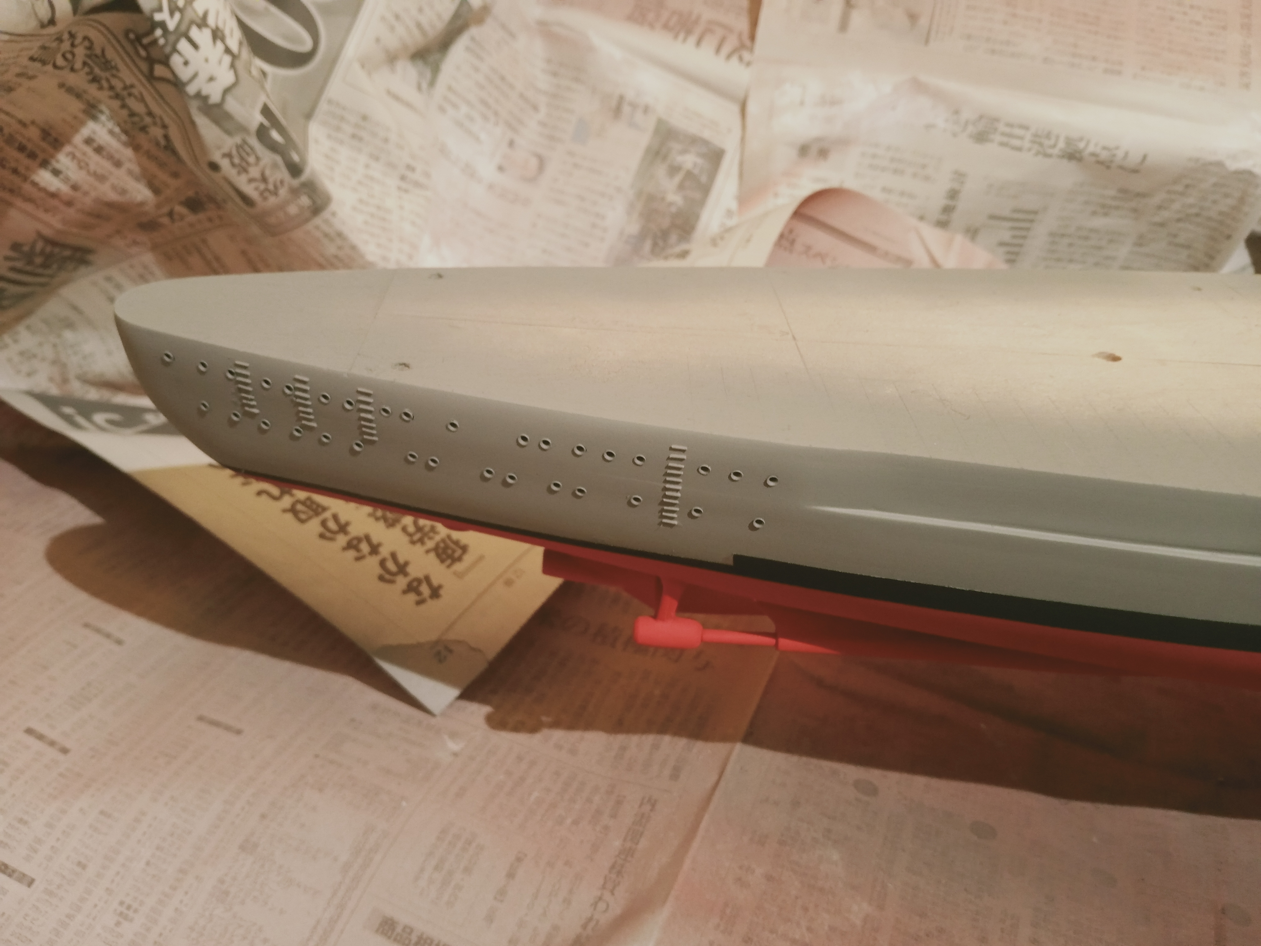 Czas leci, już w zasadzie koniec roku, a ja w międzyczasie kilka rzeczy zrobiłem. Po pierwsze stopnie na rufie. Pociąłem drut i poprzyklejałem według szablonu. Nie wyszło mi idealnie, ale nie jest źle. Szara część kadłuba pomalowana jeszcze raz, żeby przykryć niedoskonałości które wcześniej mi wyszły oraz świeżo przyklejone stopnie. Po tym wszystkim kadłub zabezpieczony, pomalowałem białe elementy na kadłubie. Prace przy kadłubie na tym etapie raczej zakończyłem. Teraz trochę pobawię się z nadbudówkami, drobnicą itd. Jesteśmy w trakcie świąt, ale mimo wszystko wszystkiego najlepszego życzę, zdrówka wszystkim itd., no i udanego Sylwestra!
