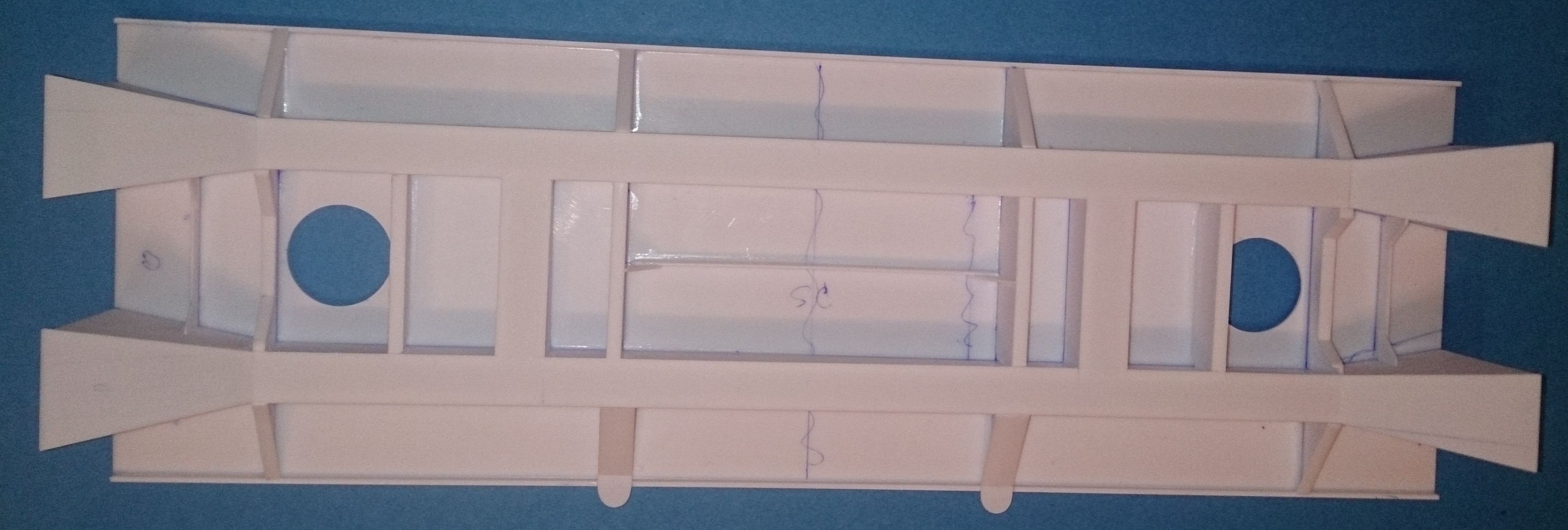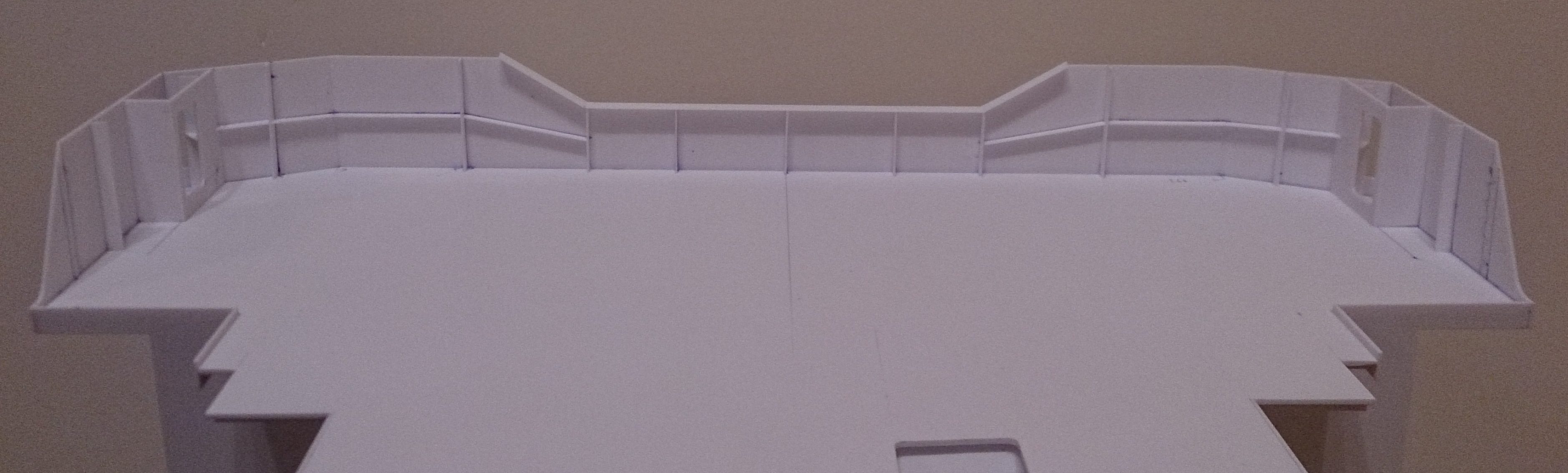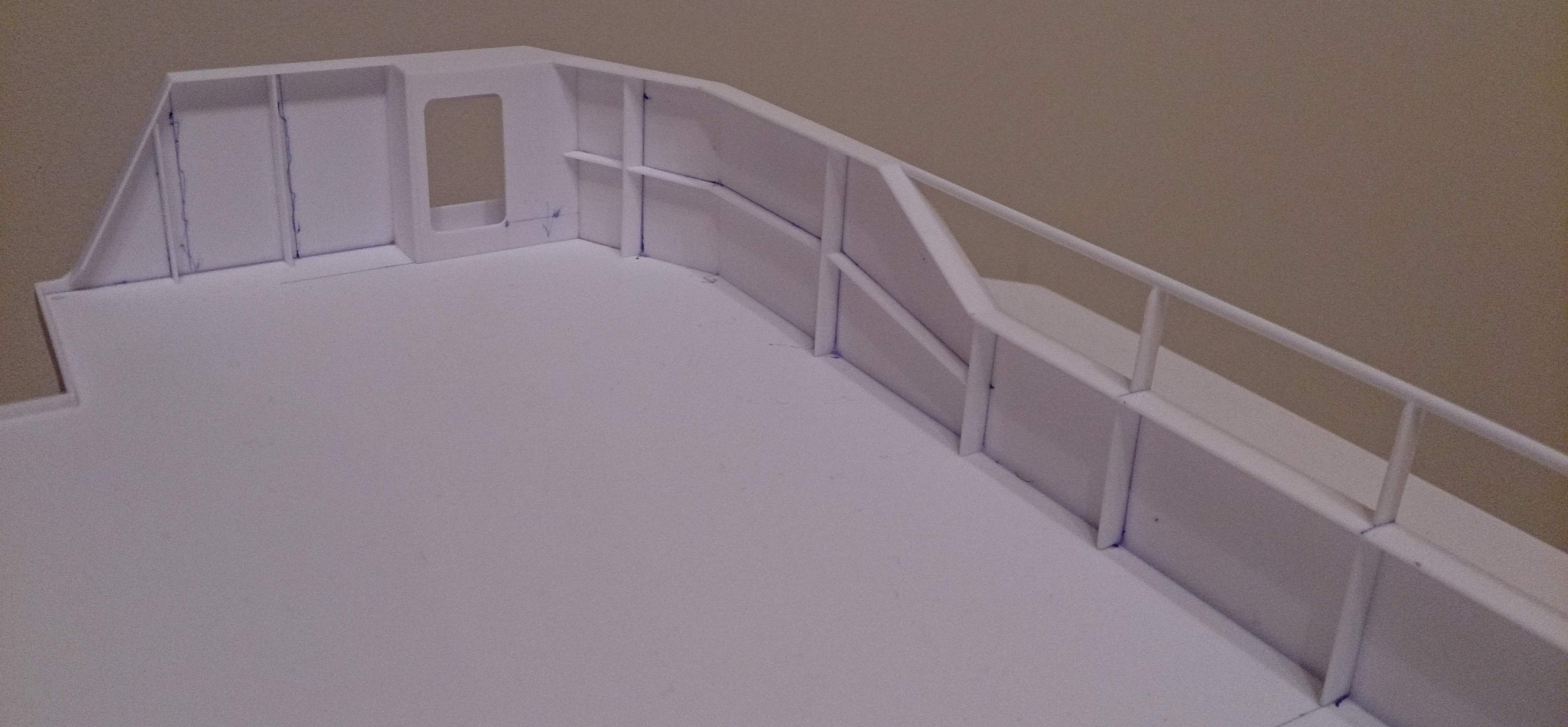 Objawiło się nadburcie pokładu sterówki z wnękami latarń burtowych oraz dwie dobudówki nadbudówki. Dziś dozbroje w usztywnienia pozostałe