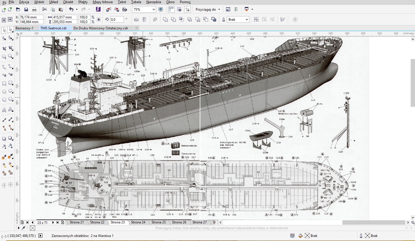 Zeskanowałem model do formatu PDF a następnie przy użyciu aplikacji Corel i Autocad przeprojektowywałem wręgi do potrzeb modelu RC...
