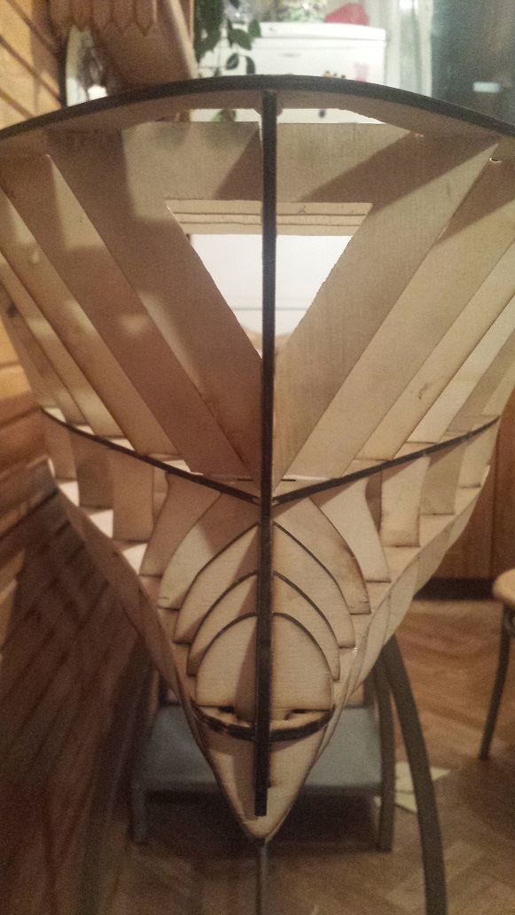 Wręgi zostały wycięte techniką laserową w sklejce pachnącej sosną o grubości 4mm