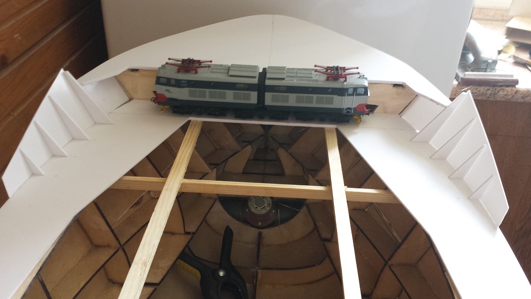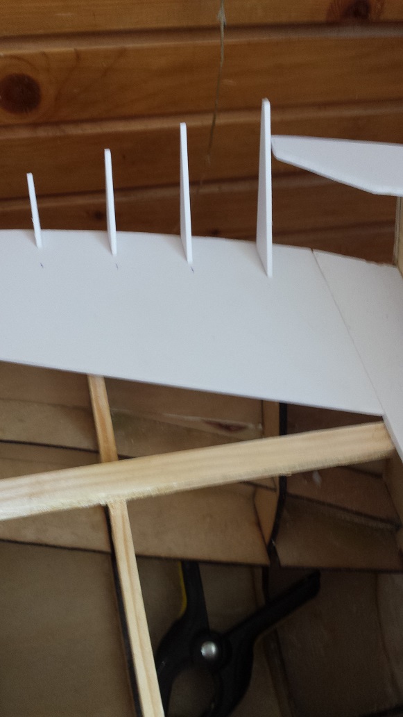 W czerwonym kółeczku widać dwóch ludzi w kaskach... mniej więcej ci ludzie są na tej samej odległości co wręgi nadburcia... Zdjęcie mało dokładne ale widać na nim dwie grubości belek wspierających nadburcie... Generalnie gdyby belka miała 2cm to człowiek byłby szerszy niż belka... a jak widać belka jest grubaśna... ludzie stoją troszkę dalej co zmienia perspektywę... nie mniej i tak widać ze jest gruba w stosunku do ludzi tam stojących...