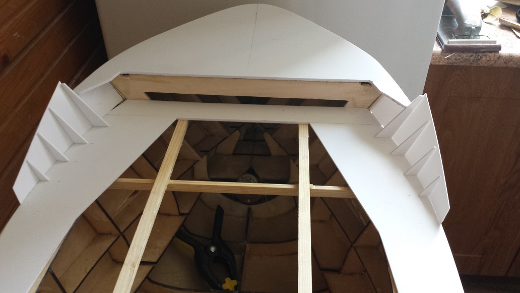 Podjąłem decyzję że jeszcze przed laminowaniem dziobu chcę pokryć laminatem również "spoiler dziobowy" albo falochron (nie wiem jak ta część się nazywa)