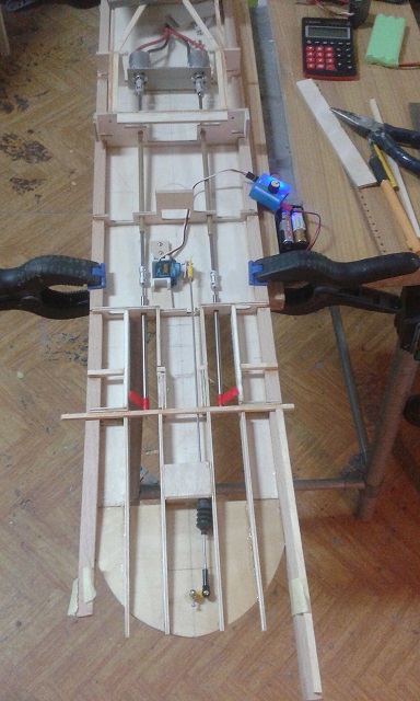 Suma summarum to wszyscy wskazują na kardany, cóż zobaczymy jak wkleję wały, tunel nad śrubami będę modelował z balsy a to materiał dźwiękochłonny więc jest szansa na ciszę, prawda że modele po położeniu na wodzie zachowują się ciszej