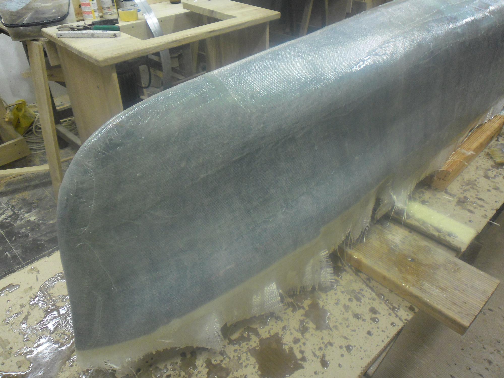 Jeśli rozdzielacz był dobrze nałożony to model wyskoczy sam, wystarczy lekko opukać foremnik młotkiem gumowym. Przy tej wielkości modelu można było pokusić się o dolaminowanie usztywnień poprzecznych trochę poniżej linii pokładu i kilku wręg zewnętrznych, które posłużyły by za stabilną podstawę, potrzebną przy laminowaniu właściwego kadłuba. Bez tego foremnik będzie dość wiotki po wyciągnięciu modelu.