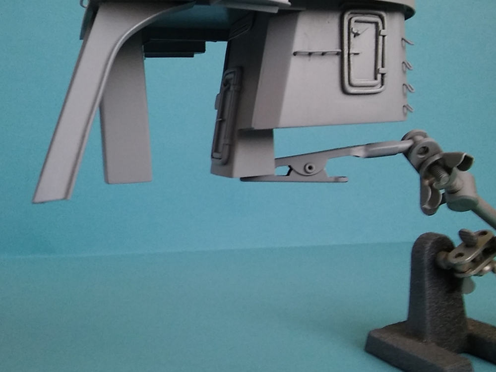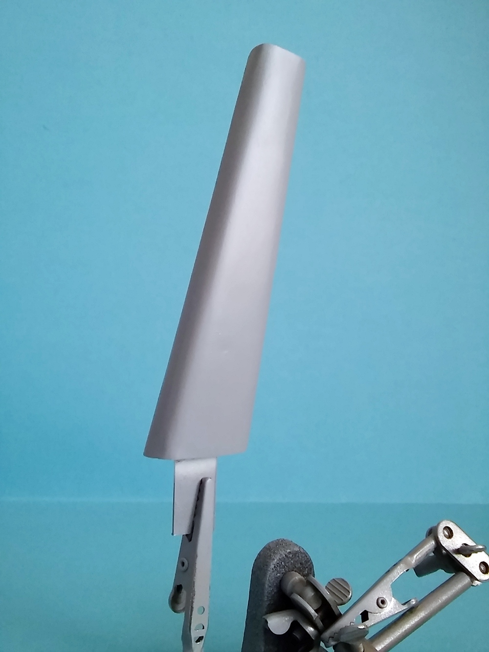 Bryła masztu gotowa. Została oklejona HIPSem 0.5 mm i pryśnięta szarym podkładem. Podczas oklejania, konieczne okazało się podgrzewanie polistyrenu na zagięciach, suszarką do włosów.