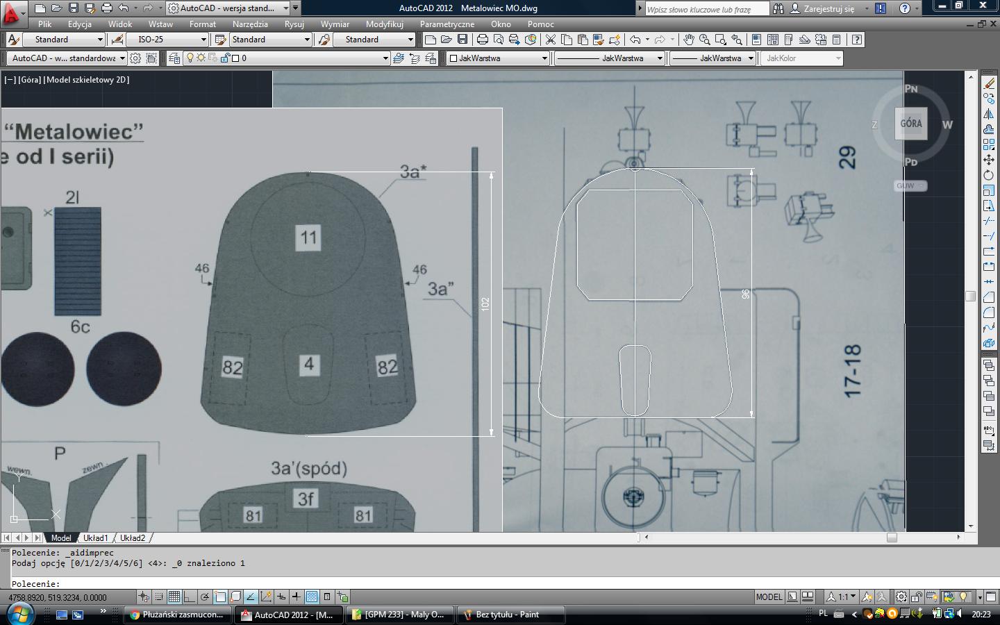 W wycinance są elementy do budowy "Górnika" i "Metalowca", czy też "Rolnika". Plany które kupiłem dotyczą tych dwóch ostatnich jednostek. Budowa na podstawie planów i wycinanki nie będzie prowadziła do niczego dobrego. Ponadto elementy z wycinanki różnią się od planów wymiarowo nawet o kilka milimetrów. Myślę że jedynym sensownym wyjściem jest potraktowanie tego co do tej pory zrobiłem jako trening w obróbce HIPSa i zaczęcie budowy od początku na podstawie planów.