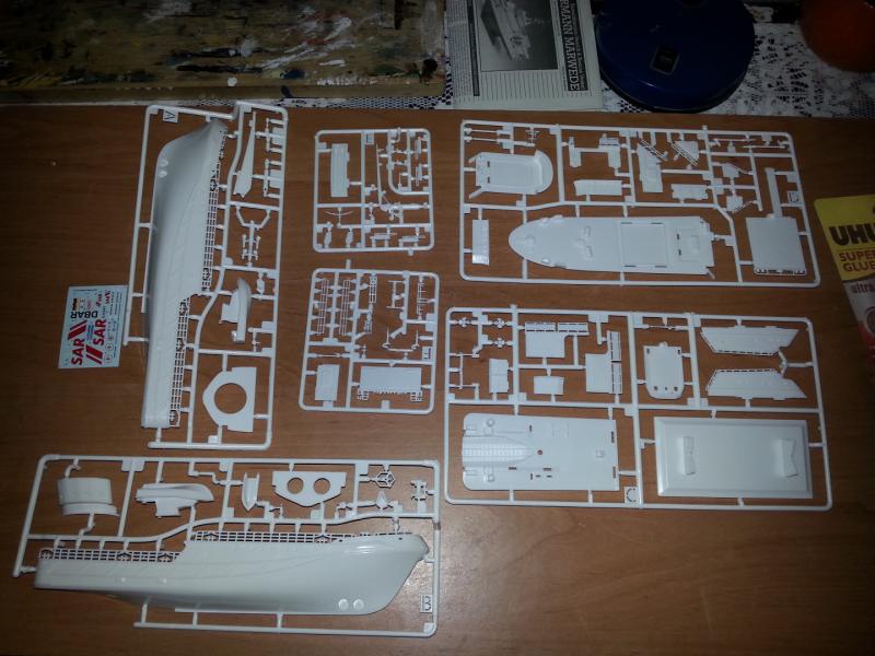 Jest to pierwsza moja relacja na tym forum z budowy modelu , a że czasu mało na sklejanie i miejsca to padło na coś szybkiego i nie dużego czyli model statku ratunkowego Hermann Marwede w skali 1/200 z zestawu Revella z plastiku.