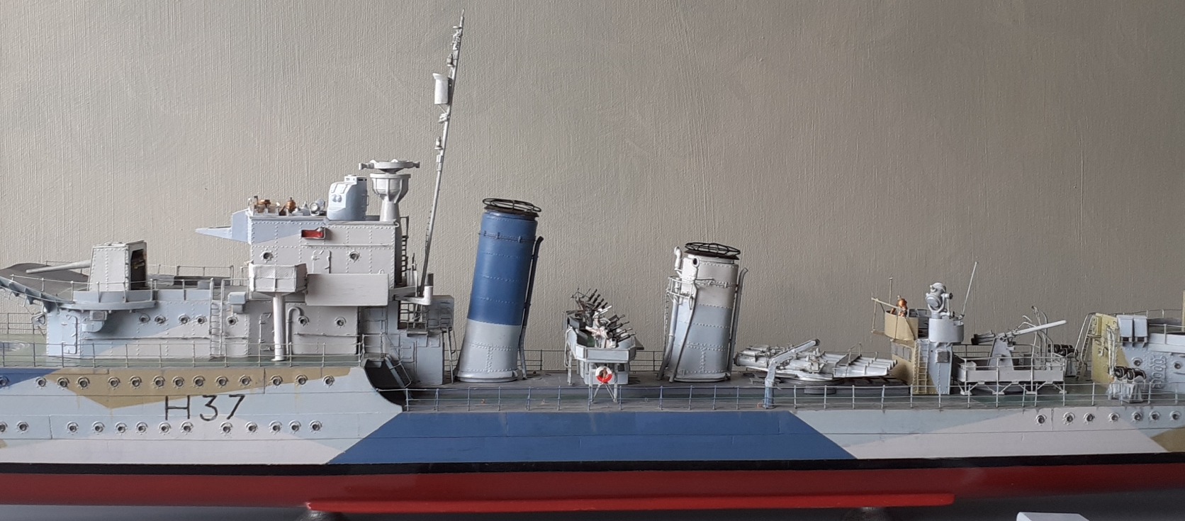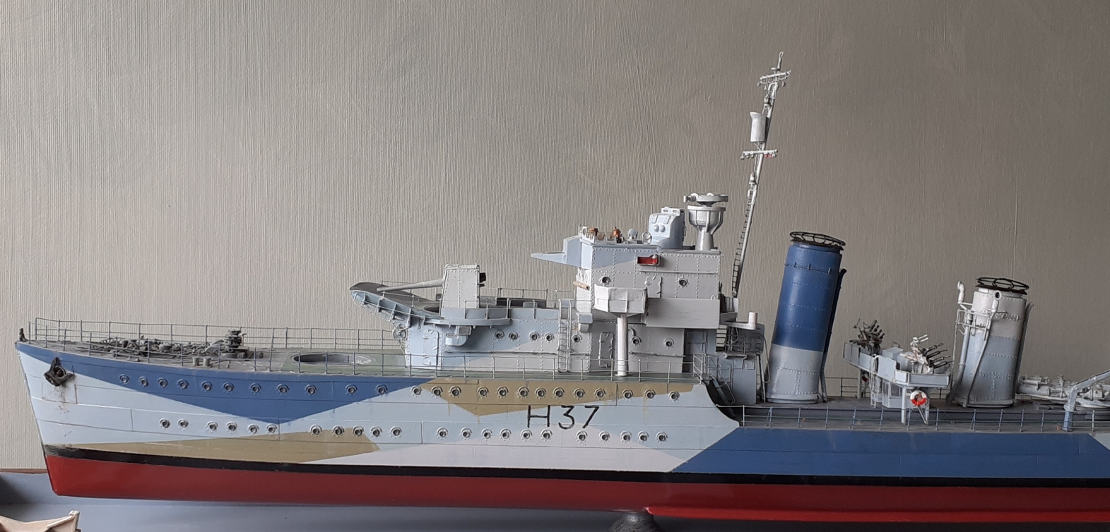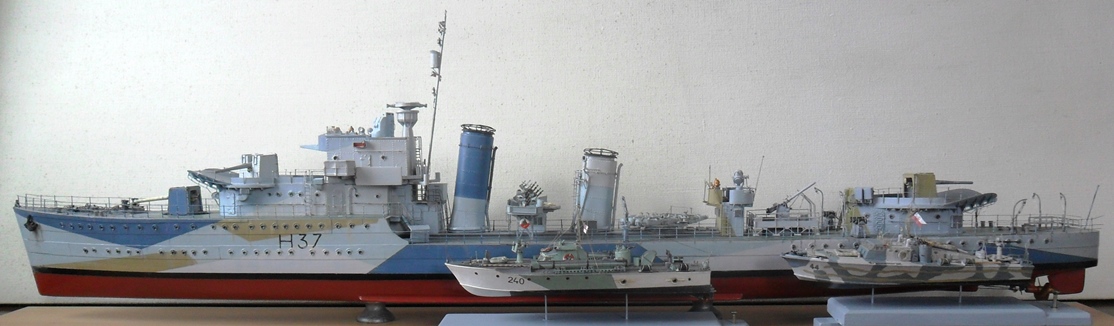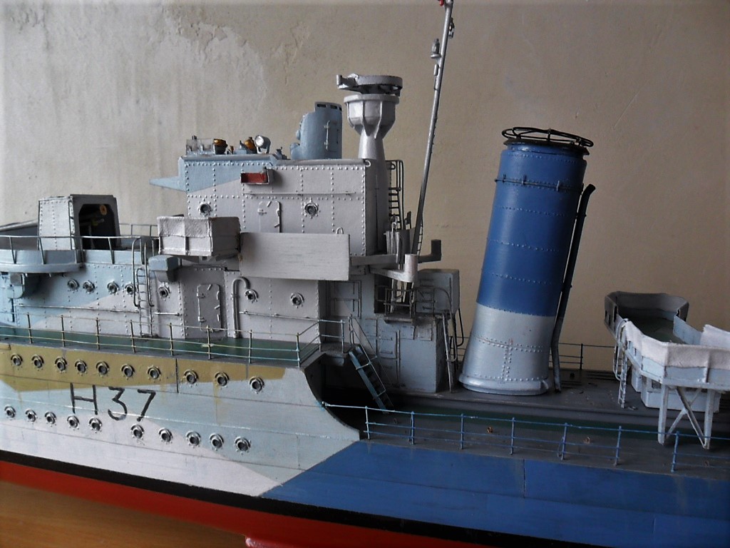 Witam,chcę pokazać montaż modelu ,który zacząłem 35 lat temu.Na początku miał być modelem pływającym,sterowany aparaturą Pilot 2,która po naprawie działa do dzisiaj.,ale proza życia pokrzyżowała plany.Co jakiś czas coś tam dłubałem,ale bez entuzjazmu.Jednak przyszedł czas ,co się zaczęło ukończyć,Z dziesięć lat temu zobaczyłem wycinankę tego modelu w internecie, zamówiłem i wykonałem go w 200 ce,wyszedł jak wyszedł,ale na podstawie jej klejenia chciałem ukończyć ten,ale potem przyszły inne modele,pozapominało się co było do przeróbki i zaczyna się od nowa,Gablota stoi od roku,.Tak wygląda na teraz po paru przeróbkach Model wykonany na podstawie PM S.Wozniaka ,poprawki na podstawie wycinanki Grzegorz Nowaka i zdjęć z internetu,oj mało tego,a okręt służył pod trzema banderami do 1967 roku.