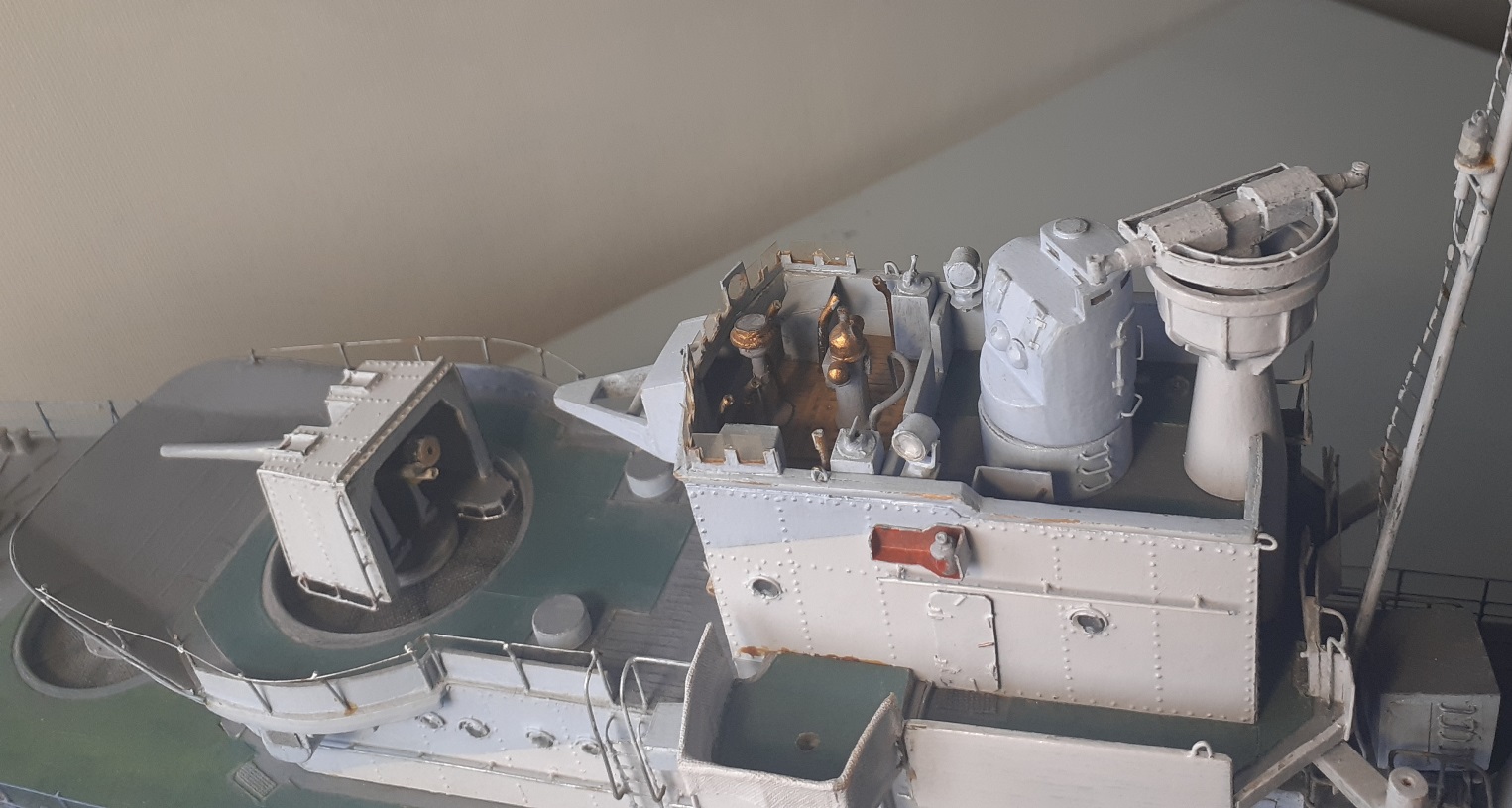 Witam,troche mnie tu nie było, remont domu trwa więc postępy w stoczni słabo widoczne ,ale stale coś się tam dodaje przerabia.Zamontowałem łańcuchy i kotwice,podniosłem stanowisko orlikona przy nadbudówce dowodzenia Wszystko gotowe prawie do montażu linek masztu, łodzi ,kominów.Do poprawki łodzie ,tratwy i pontony.Poprawiłem ,przedłużłem lufy w działach głównych i pl 76.2.Sporo jeszcze do końca ale widać światełko w tunelu,pozdrawiam Marek