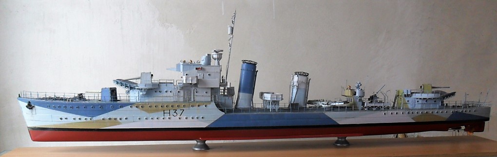 Witam,chcę pokazać montaż modelu ,który zacząłem 35 lat temu.Na początku miał być modelem pływającym,sterowany aparaturą Pilot 2,która po naprawie działa do dzisiaj.,ale proza życia pokrzyżowała plany.Co jakiś czas coś tam dłubałem,ale bez entuzjazmu.Jednak przyszedł czas ,co się zaczęło ukończyć,Z dziesięć lat temu zobaczyłem wycinankę tego modelu w internecie, zamówiłem i wykonałem go w 200 ce,wyszedł jak wyszedł,ale na podstawie jej klejenia chciałem ukończyć ten,ale potem przyszły inne modele,pozapominało się co było do przeróbki i zaczyna się od nowa,Gablota stoi od roku,.Tak wygląda na teraz po paru przeróbkach Model wykonany na podstawie PM S.Wozniaka ,poprawki na podstawie wycinanki Grzegorz Nowaka i zdjęć z internetu,oj mało tego,a okręt służył pod trzema banderami do 1967 roku.