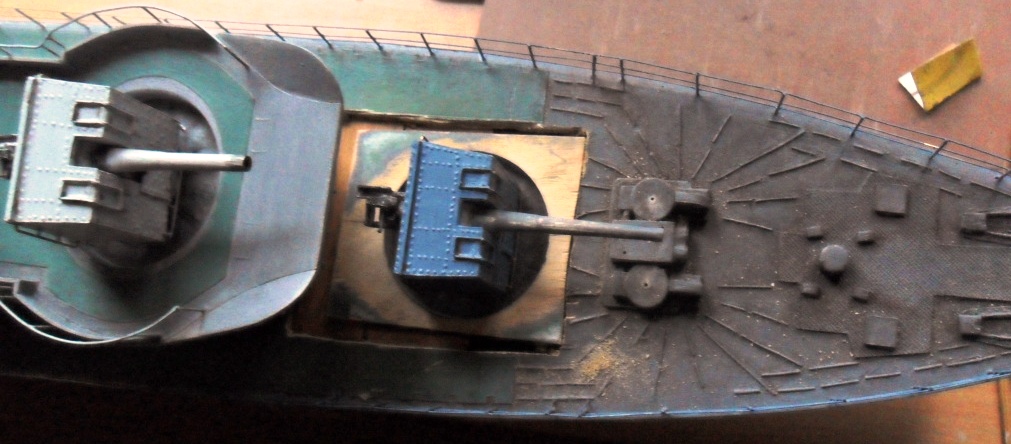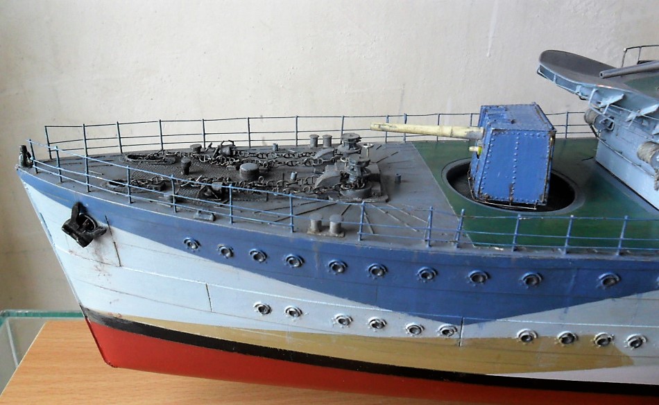 Witam,troche mnie tu nie było, remont domu trwa więc postępy w stoczni słabo widoczne ,ale stale coś się tam dodaje przerabia.Zamontowałem łańcuchy i kotwice,podniosłem stanowisko orlikona przy nadbudówce dowodzenia Wszystko gotowe prawie do montażu linek masztu, łodzi ,kominów.Do poprawki łodzie ,tratwy i pontony.Poprawiłem ,przedłużłem lufy w działach głównych i pl 76.2.Sporo jeszcze do końca ale widać światełko w tunelu,pozdrawiam Marek