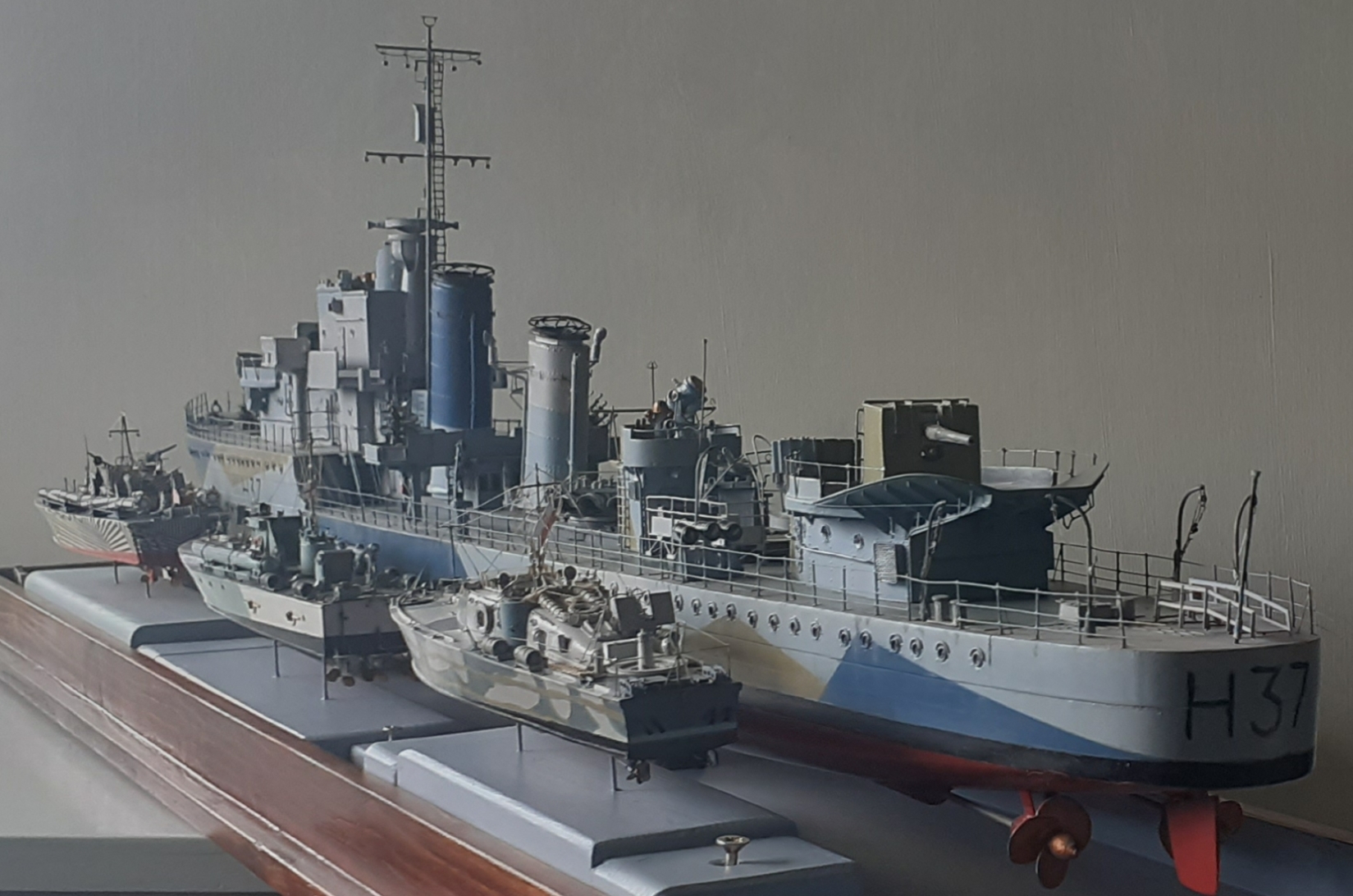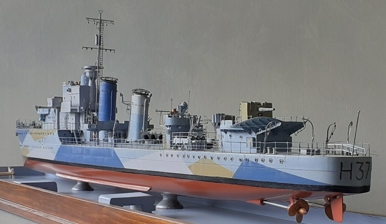 Witam,chcę pokazać montaż modelu ,który zacząłem 35 lat temu.Na początku miał być modelem pływającym,sterowany aparaturą Pilot 2,która po naprawie działa do dzisiaj.,ale proza życia pokrzyżowała plany.Co jakiś czas coś tam dłubałem,ale bez entuzjazmu.Jednak przyszedł czas ,co się zaczęło ukończyć,Z dziesięć lat temu zobaczyłem wycinankę tego modelu w internecie, zamówiłem i wykonałem go w 200 ce,wyszedł jak wyszedł,ale na podstawie jej klejenia chciałem ukończyć ten,ale potem przyszły inne modele,pozapominało się co było do przeróbki i zaczyna się od nowa,Gablota stoi od roku,.Tak wygląda na teraz po paru przeróbkach Model wykonany na podstawie PM S.Wozniaka ,poprawki na podstawie wycinanki Grzegorz Nowaka i zdjęć z internetu,oj mało tego,a okręt służył pod trzema banderami do 1967 roku.
