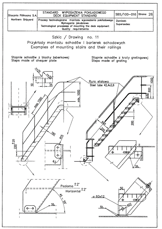 Zapomniałeś o podeście górnym przy pokładzie. Załączę ci parę rysunków z książek Poradnika Ślusarza Okrętowego i Prof. S. Wewiórskiego Wyposażenie Kadłuba Okrętowego , pochodzących z tego okresu jak Twój model.