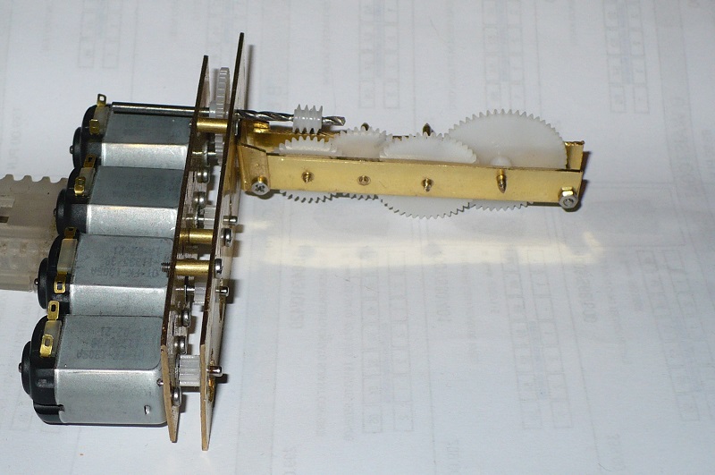 Pierwszy zestaw jest gotowy . Takich zestawów będzie jeszcze trzy . Będą otwierać ładownie : pokład główny , prawą i lewą , rufa , pokład dziobowy . Jest jeszcze ładownia na pokładzie głównym ale ją połączę z ładownią pokładu dziobowego . Prowizorycznie sprawdzałem i na ostatniej przekładni jest bardzo mały obrót na czym mi zależało .Jak będę miał już wszystkie przekładnie będę musiał tak wszystko opiłować aby zbędna blaszka miedziana została wyeliminowana co pozwoli zmniejszyć ciężar .