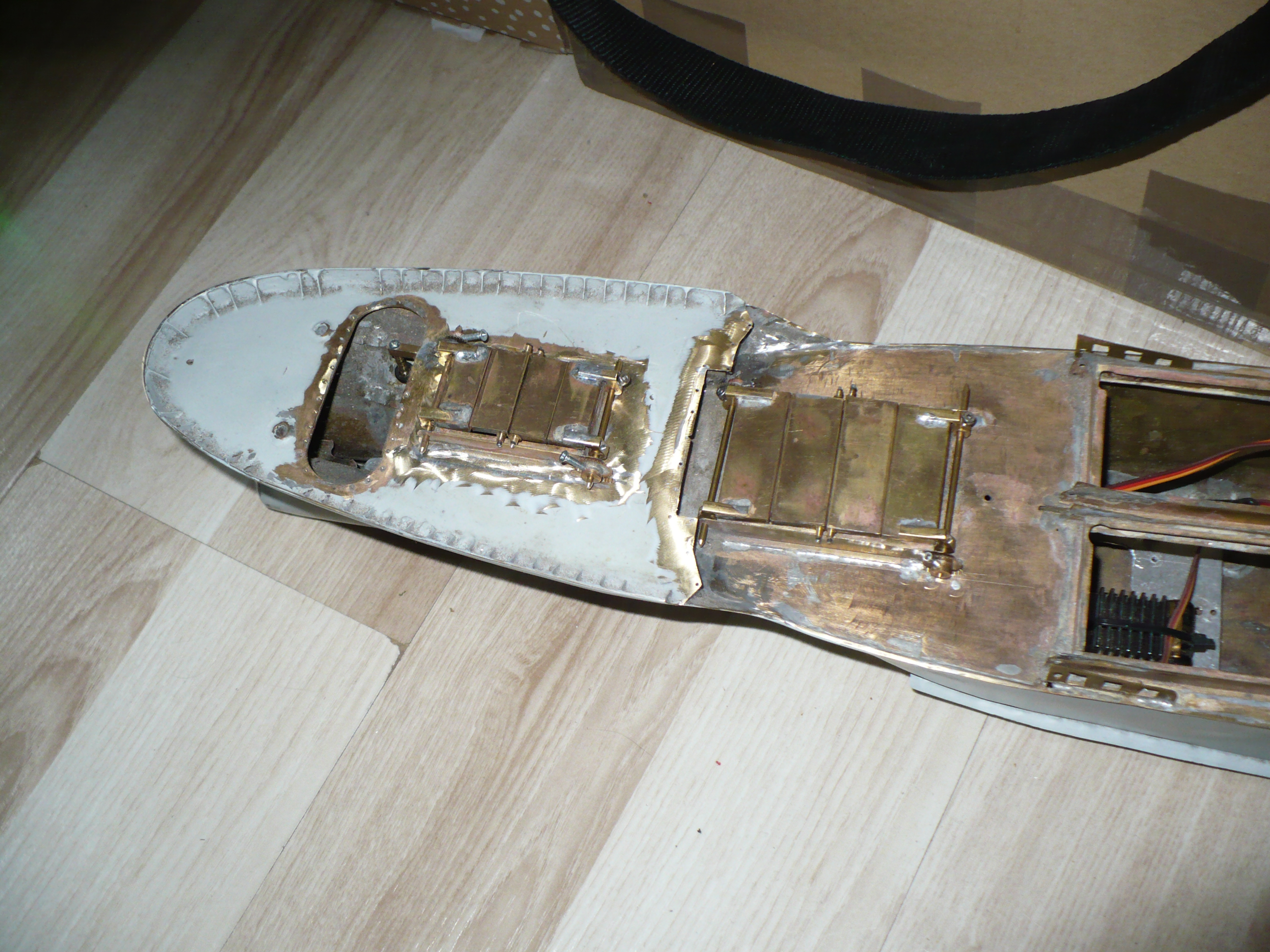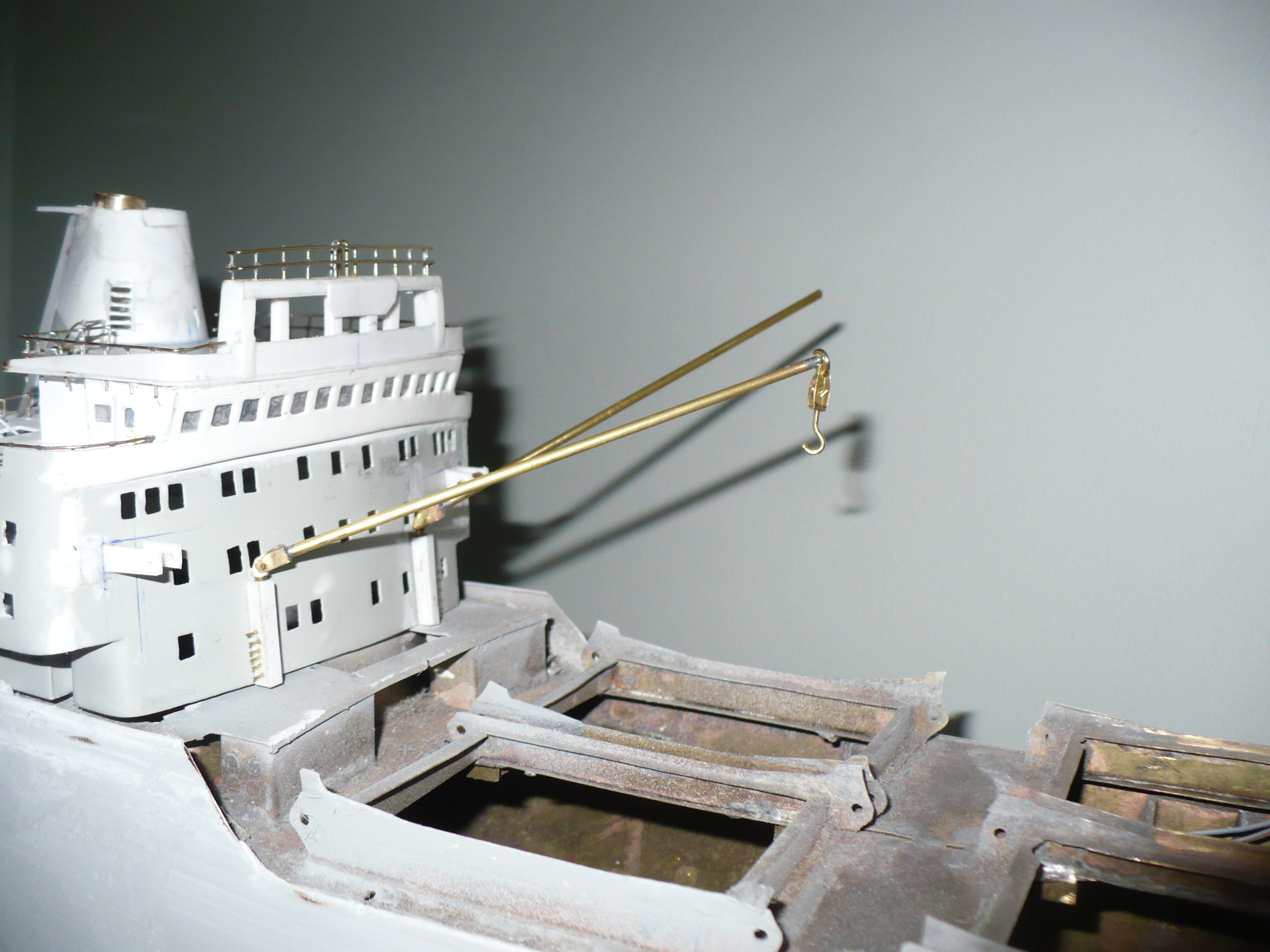 Pokrywy na dziobie i pokładzie głównym działają . Muszę jeszcze usunąć zatarcia i dorobić szyny przy końcach aby pokrywy otwierały sie do pionu .