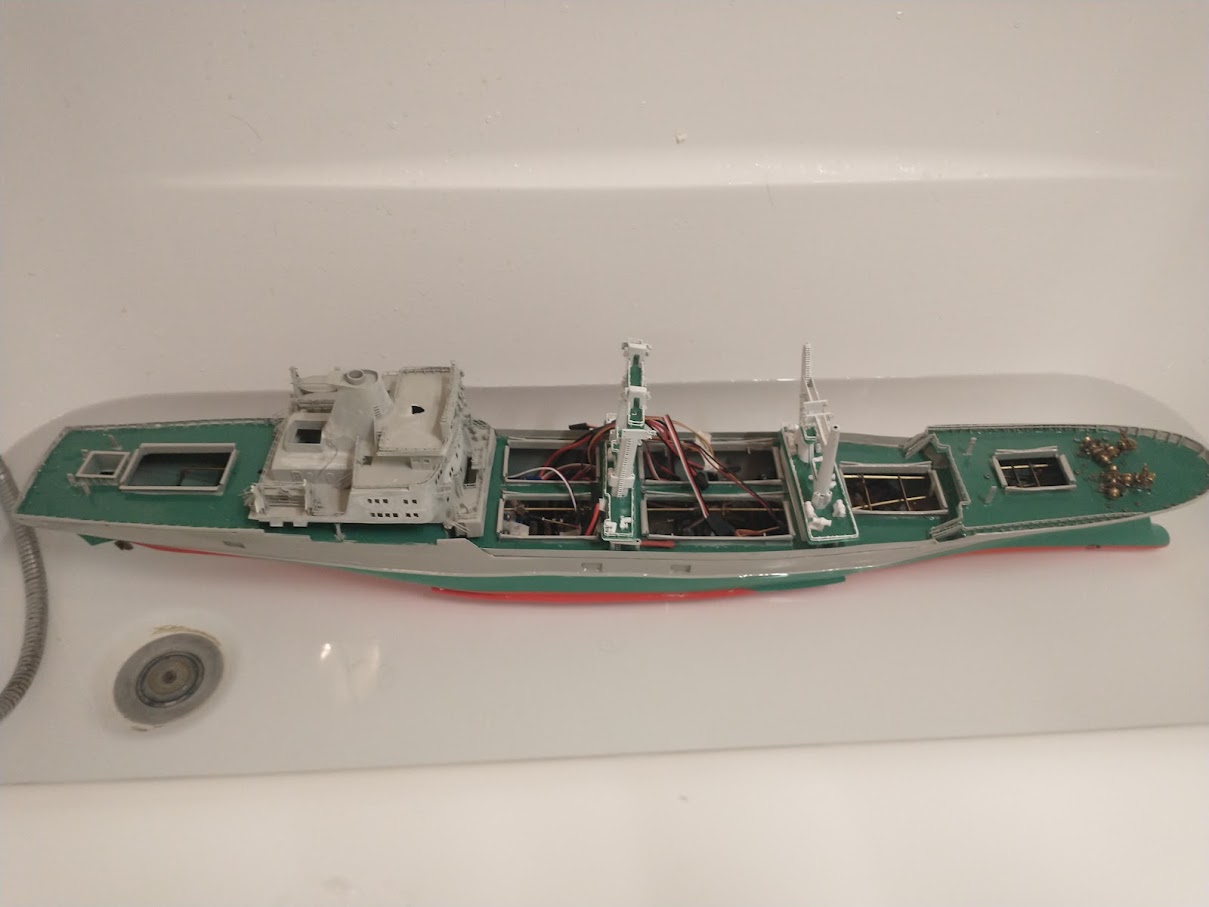 Cała mechanika na swoim miejscu. Zanurzenie pozwala jeszcze na umieszczenie elementów nadbudówki i pokryw ładowni